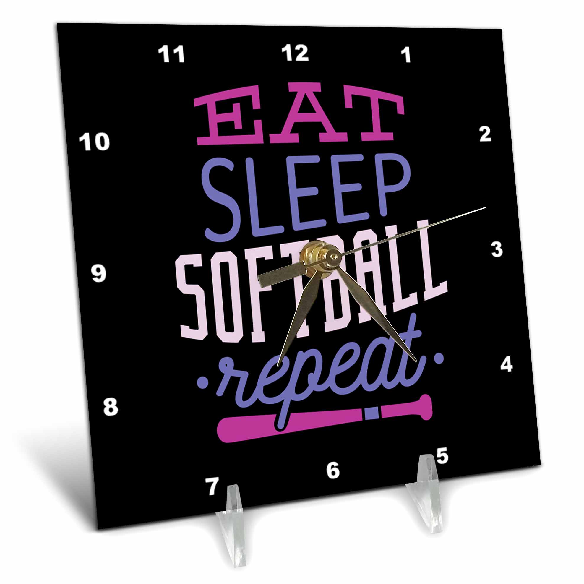 3dRose Sven Herkenrath Sport - Eat Sleep Softball Repeat Funny Quotes for Sport Lovers - Desk Clocks (dc_319688)