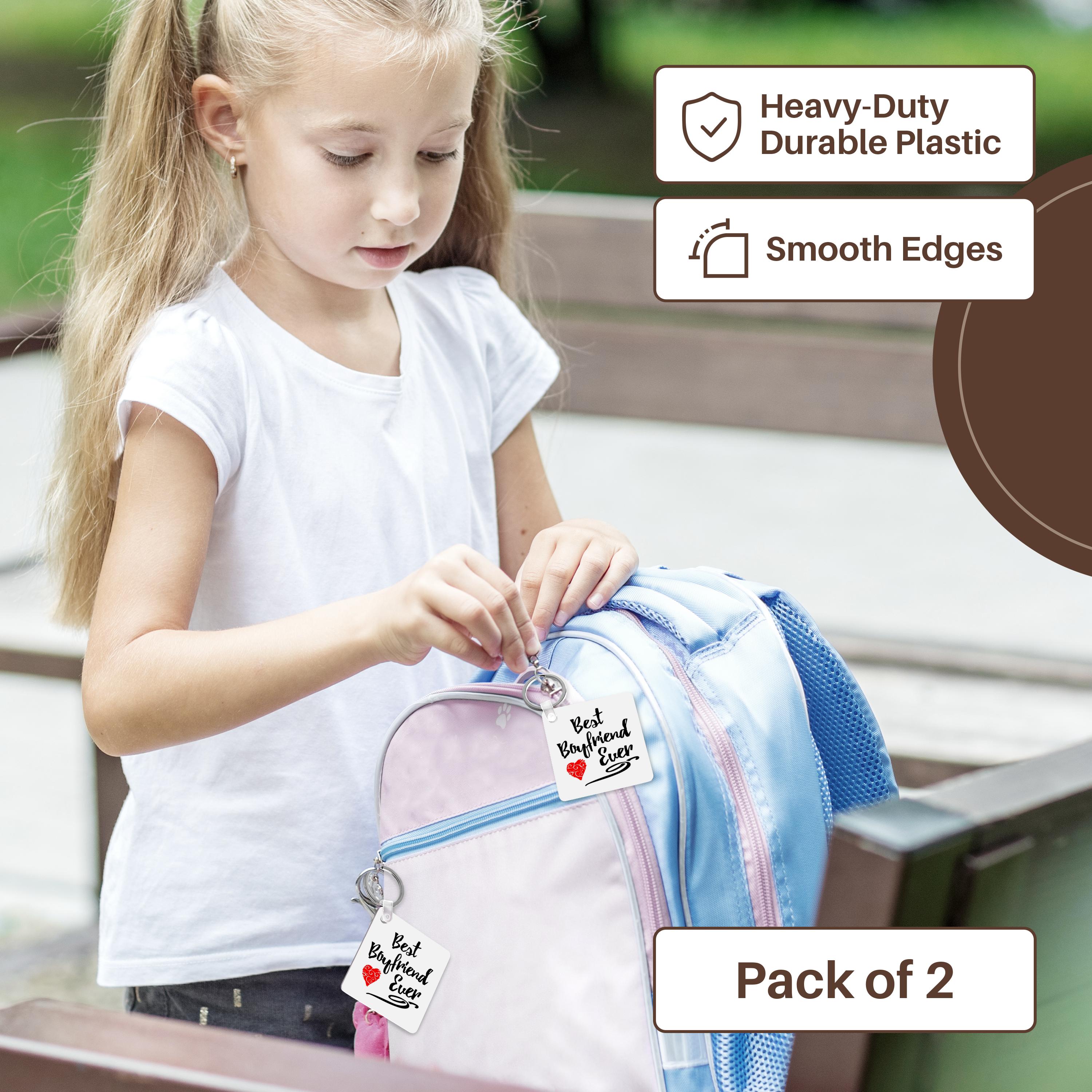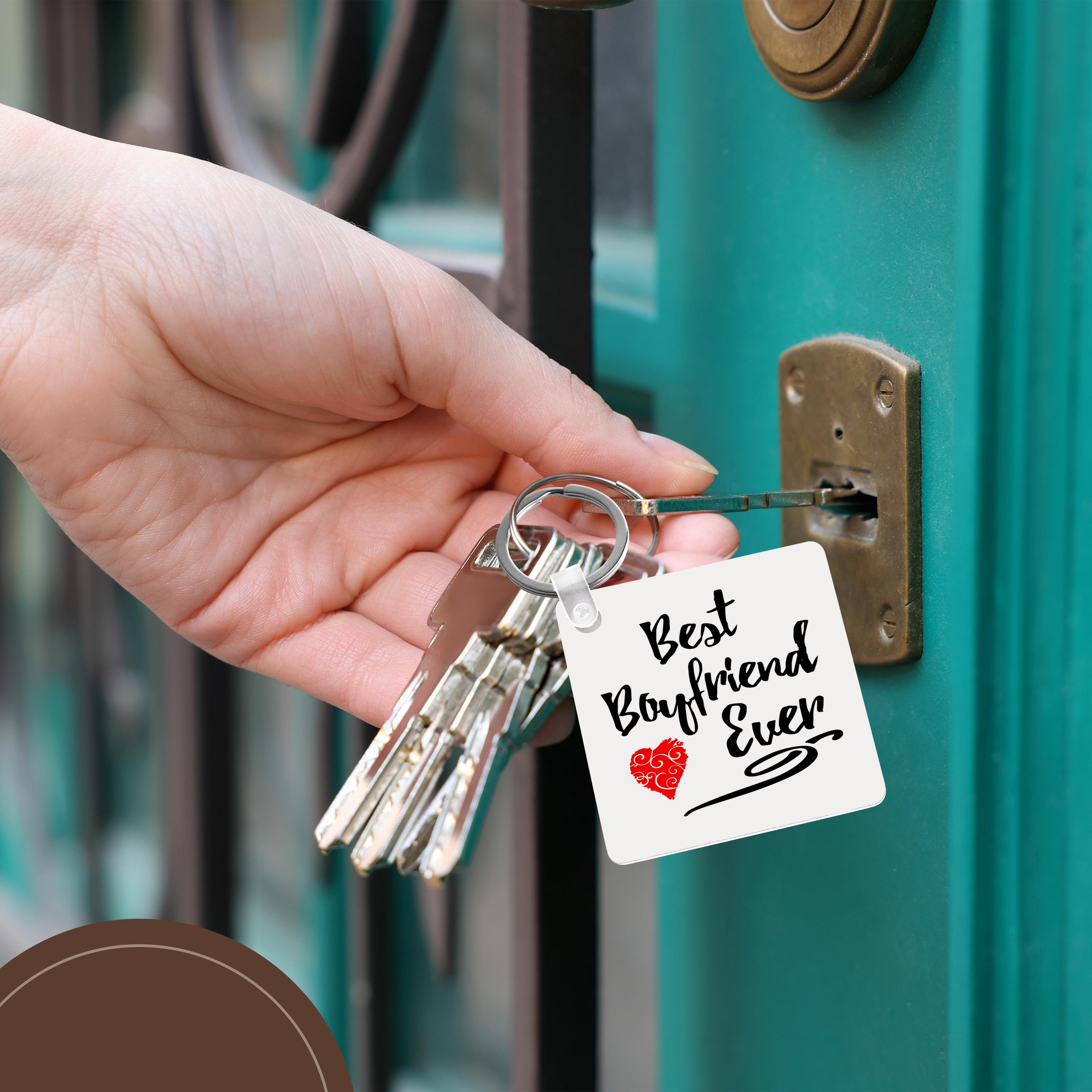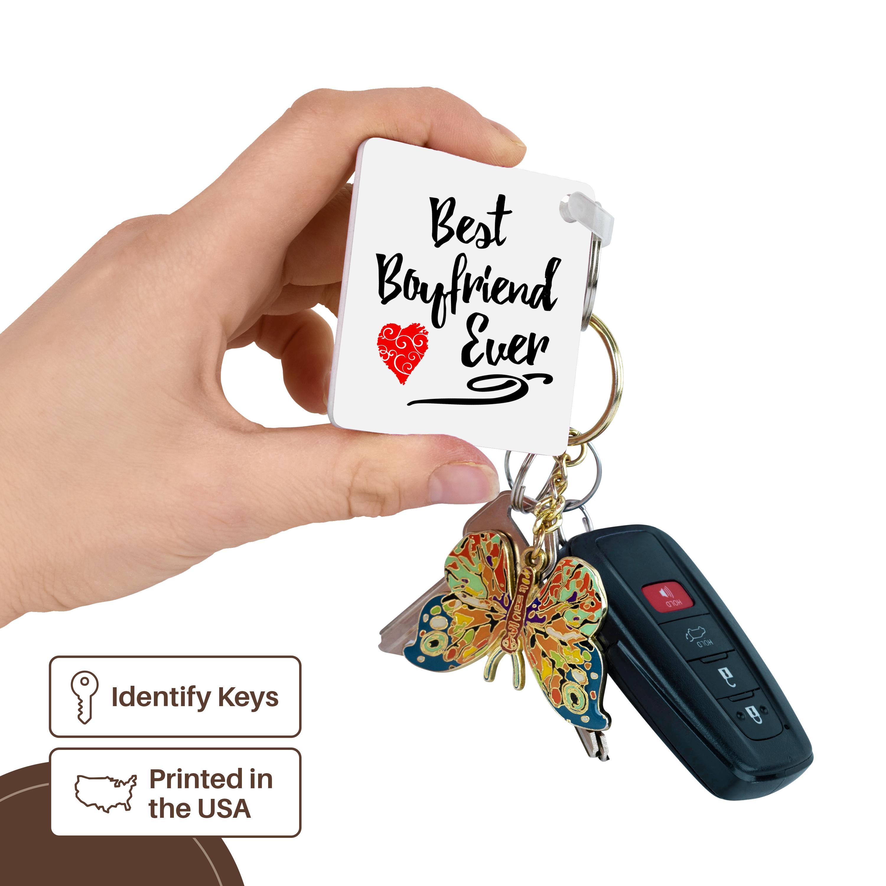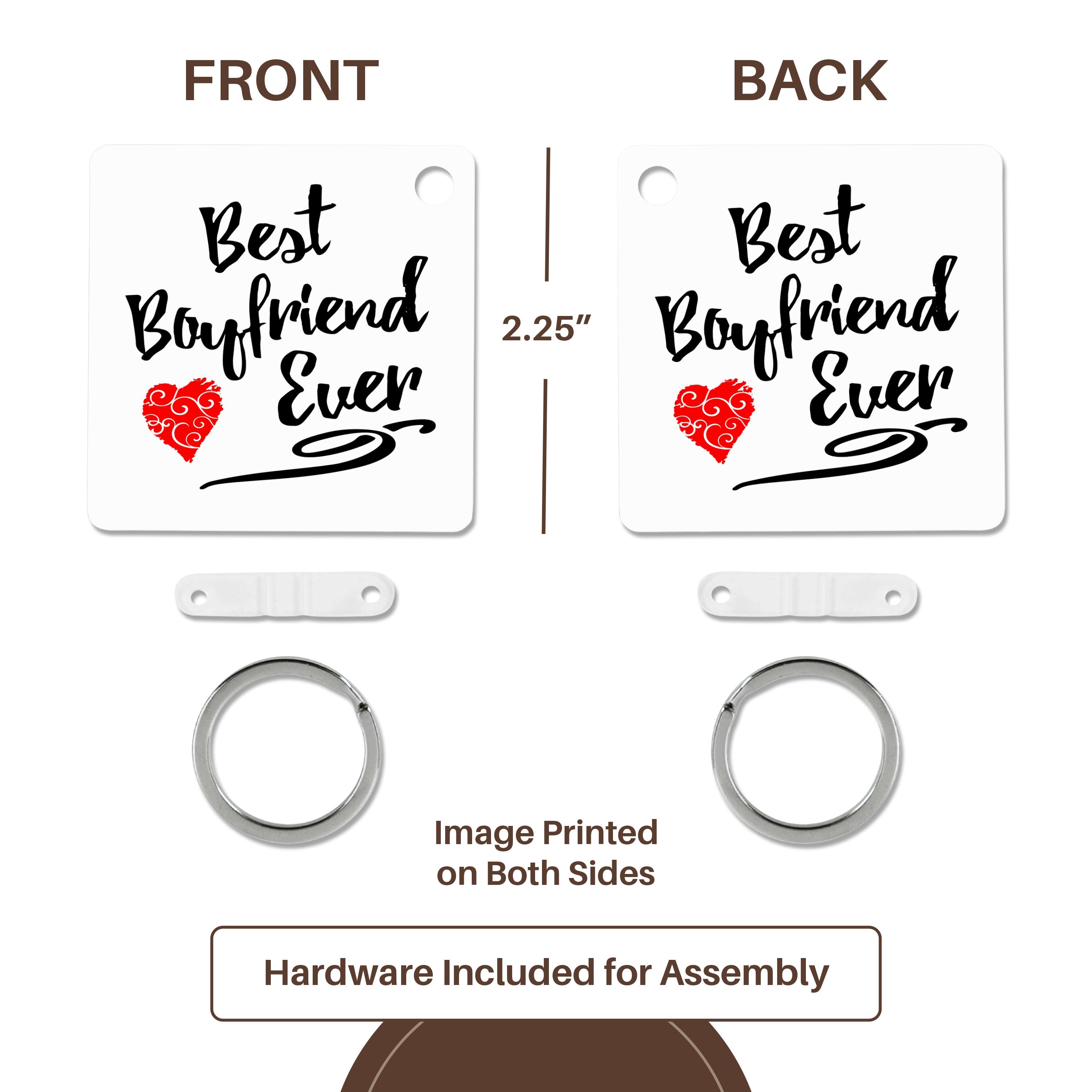 Best Boyfriend Ever Design Key Chain is available in sets of 2, 4 and 6; making them perfect for sharing. Image is printed on both sides and has a high gloss finish. Measures 2 3/8" x 2 3/8" x 3/8" and are made of heavy duty durable plastic. Rings and plastic clips included.