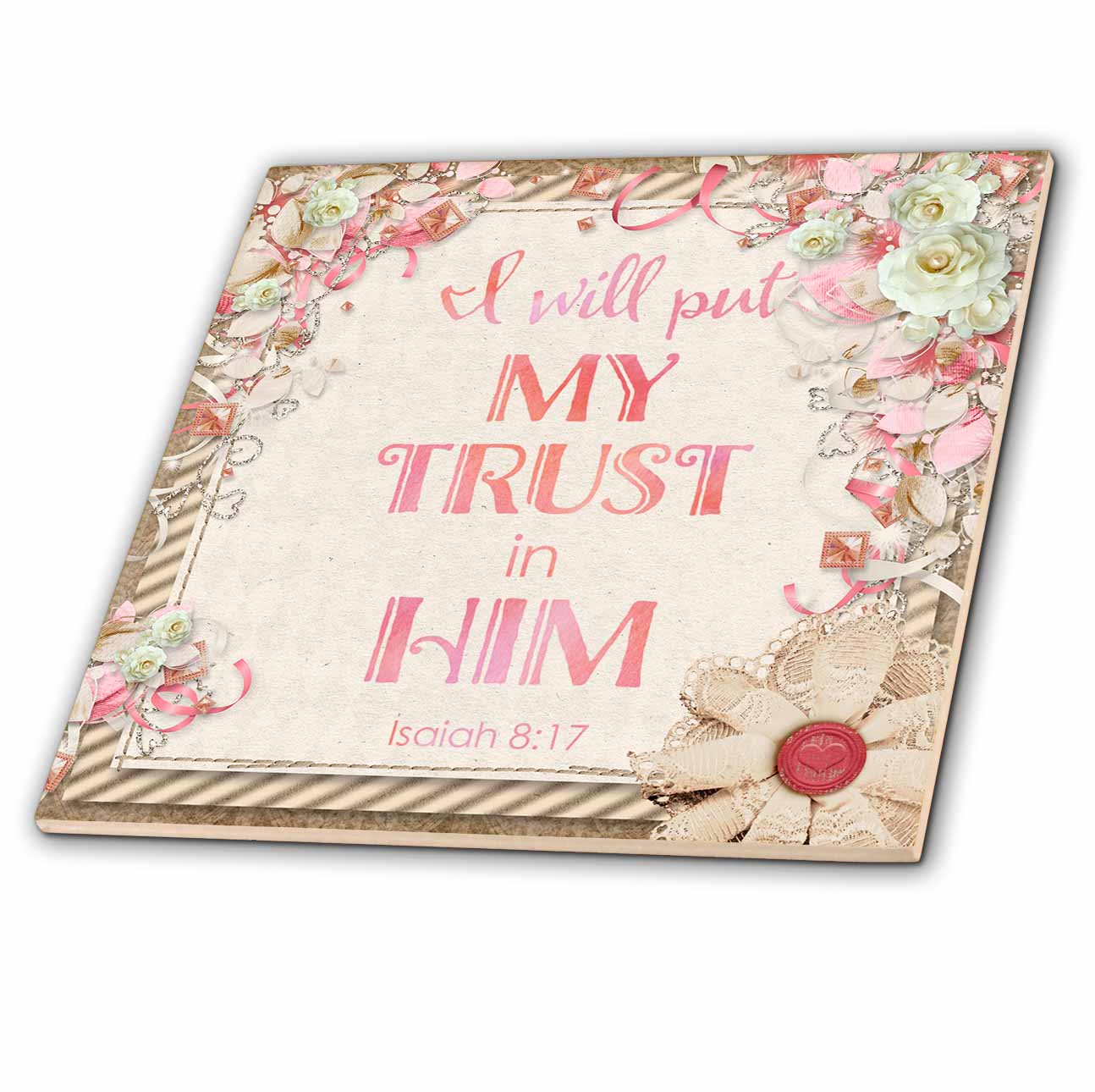 3dRose Nostalgic Illustration with Bible Psalm I Will Put My Trust in Him - Tiles (ct_325633)