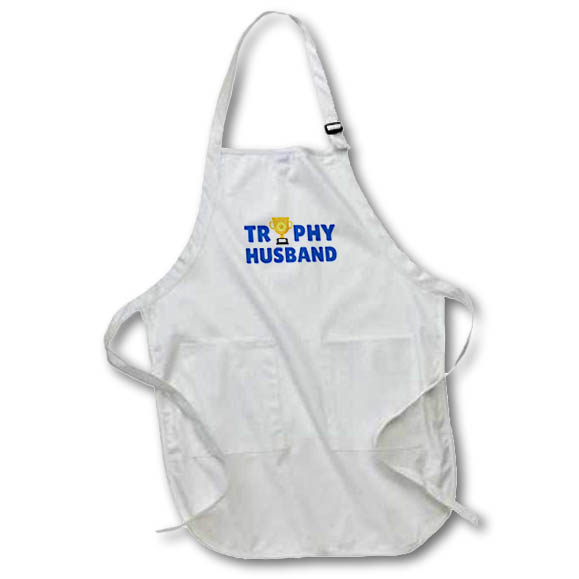 Trophy Husband Apron is made of a 65/35 poly/cotton blend. Whether it is put to use in a restaurant or at home, this apron will always help to keep you clean. Full length features adjustable neck strap. Medium length features non-adjustable neck strap that fits over your head. Both sizes also tie around the waist.