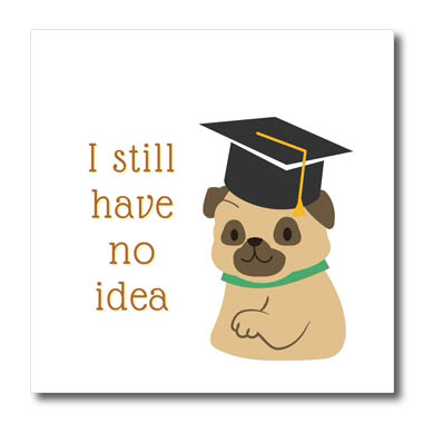 Funny Image of Pug Graduating Iron on Heat Transfer is a great way to jazz up a plain T-shirt, pillow case or any other light colored fabric. The transfer is transparent and should be applied only to white or light colored material suitable to withstand high heat. Available in 6", 8" and 10". Color not true until transferred; home iron instructions included. Wash inside out using mild detergent and dry on low heat. Made in USA.