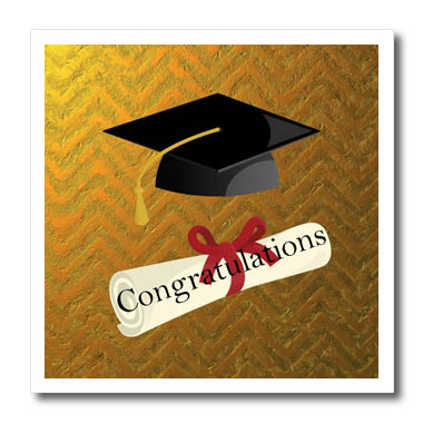 3dRose Image of Diploma Says Congratulations with Cap On Gold... - Iron on Heat Transfers (ht_357991)