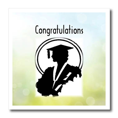 Image of Silhouette Of Girl Graduate On Pastel Blue Green Gradient Iron on Heat Transfer is a great way to jazz up a plain T-shirt, pillow case or any other light colored fabric. The transfer is transparent and should be applied only to white or light colored material suitable to withstand high heat. Available in 6", 8" and 10". Color not true until transferred; home iron instructions included. Wash inside out using mild detergent and dry on low heat. Made in USA.