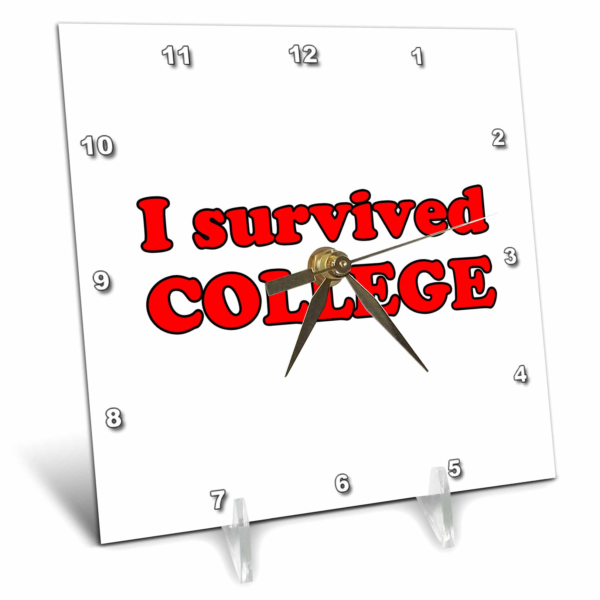 I Survived College Red Desk Clock is a wonderful complement to any room in your home or office. Made of durable high grade aluminum. This frame-less clock has a high gloss mirror like, UV coated, scratch resistant finish and is suitable for a moist environment. Measures 6" x 6" and requires one AA battery; not included. Battery box is not covered. Made in USA.