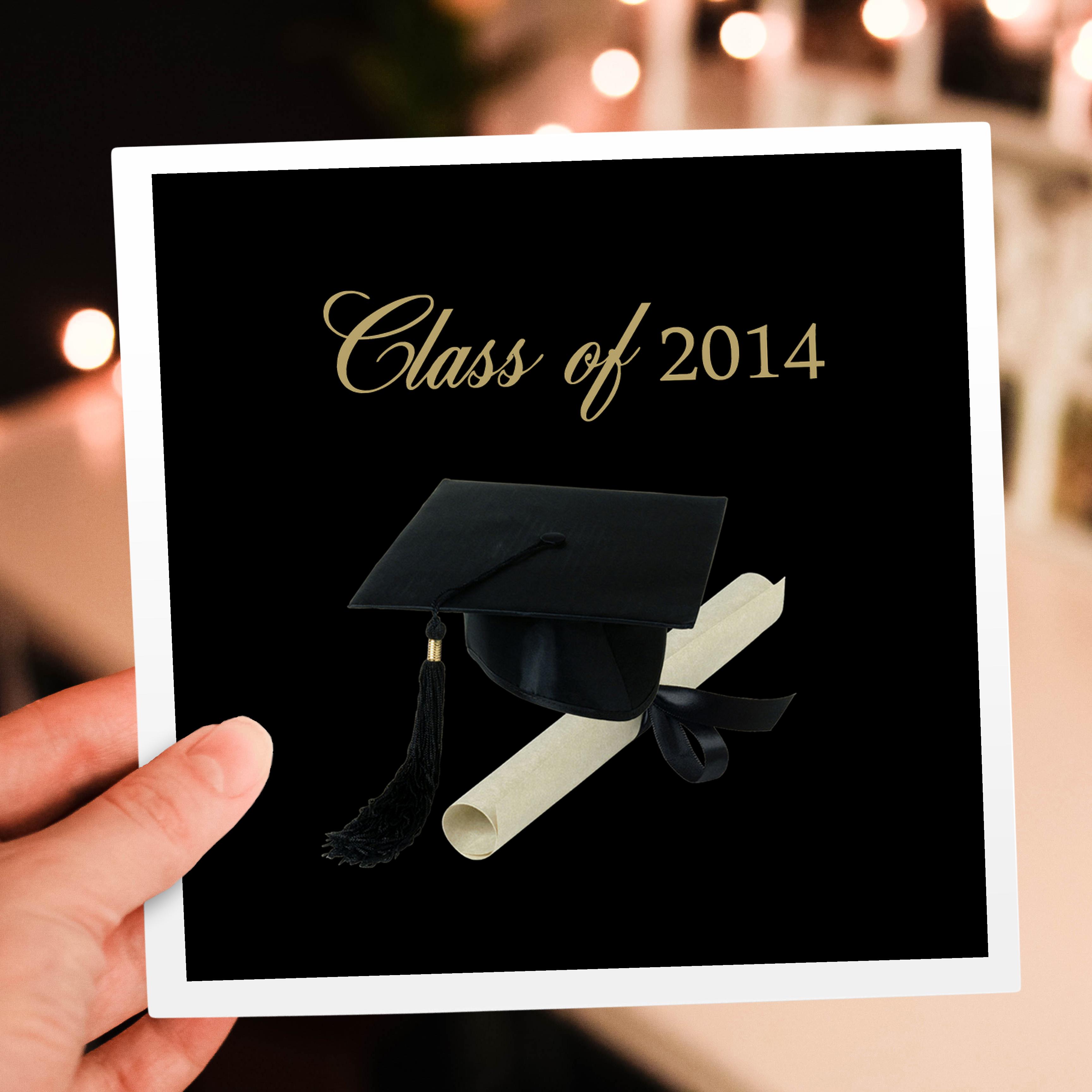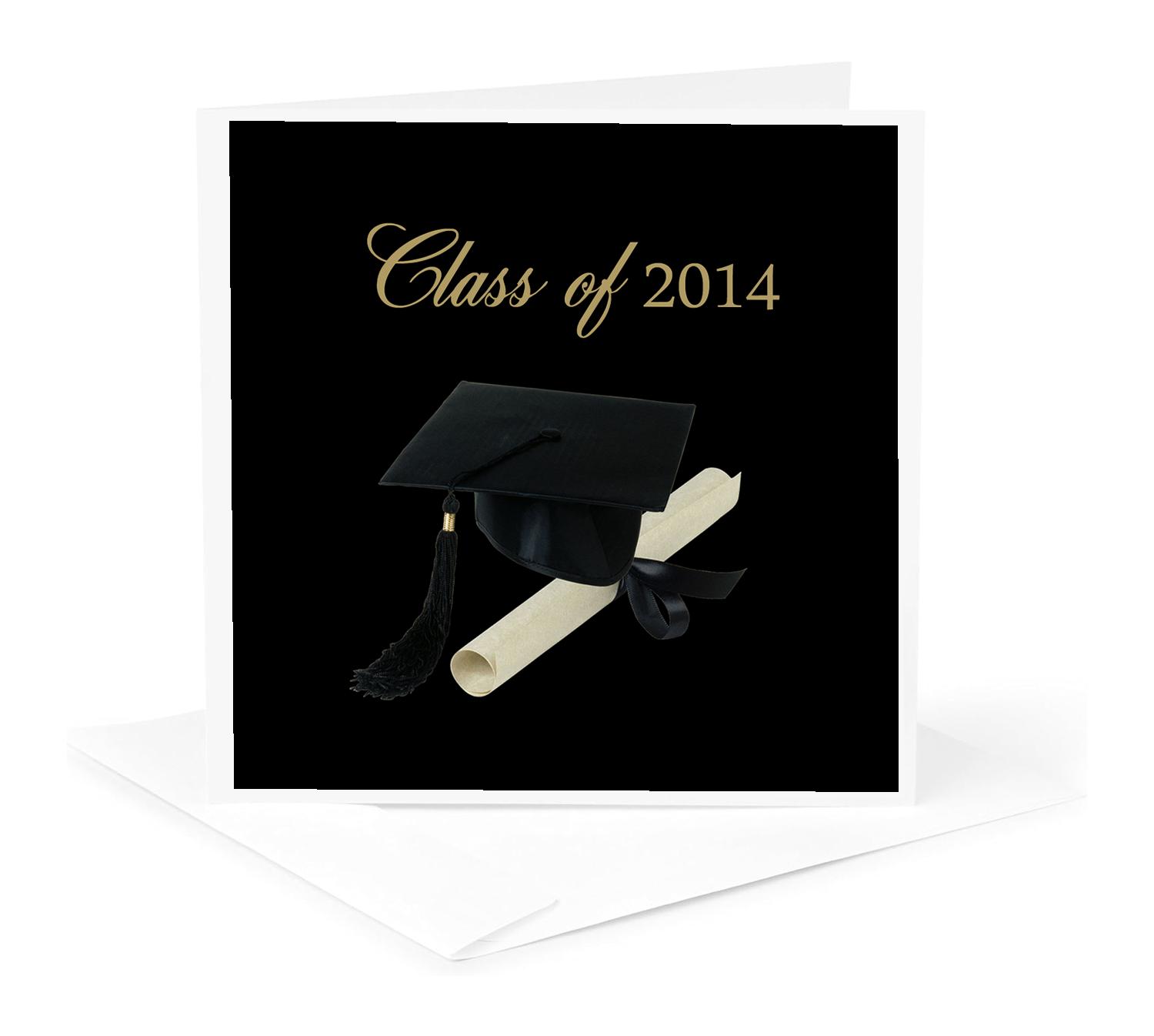 Beverly Turner Graduation Design - Graduation Cap and Diploma on Black, Class of 2014 - Greeting Cards