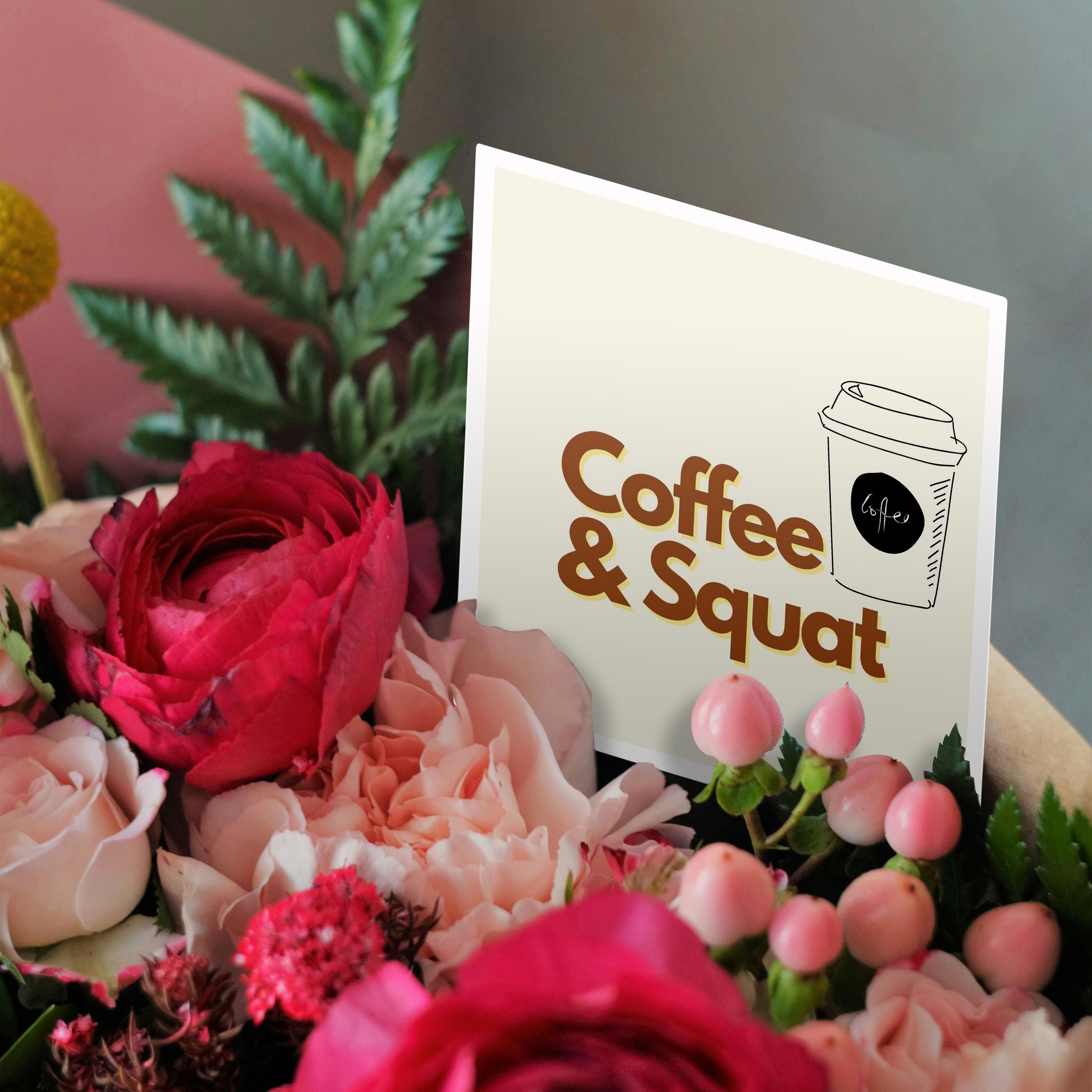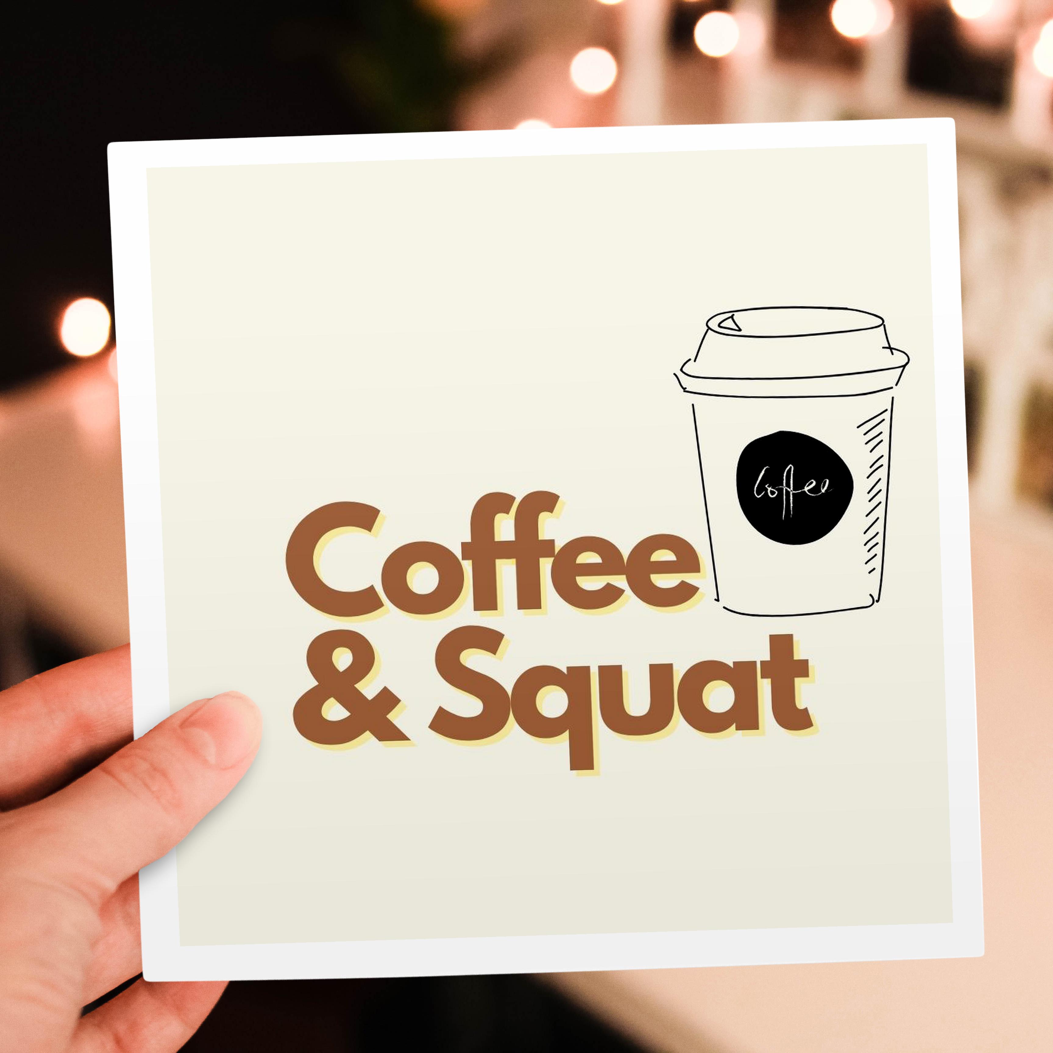 3dRose A cup of Coffee with Text of Coffee and Squat - Greeting Cards (gc-376849)
