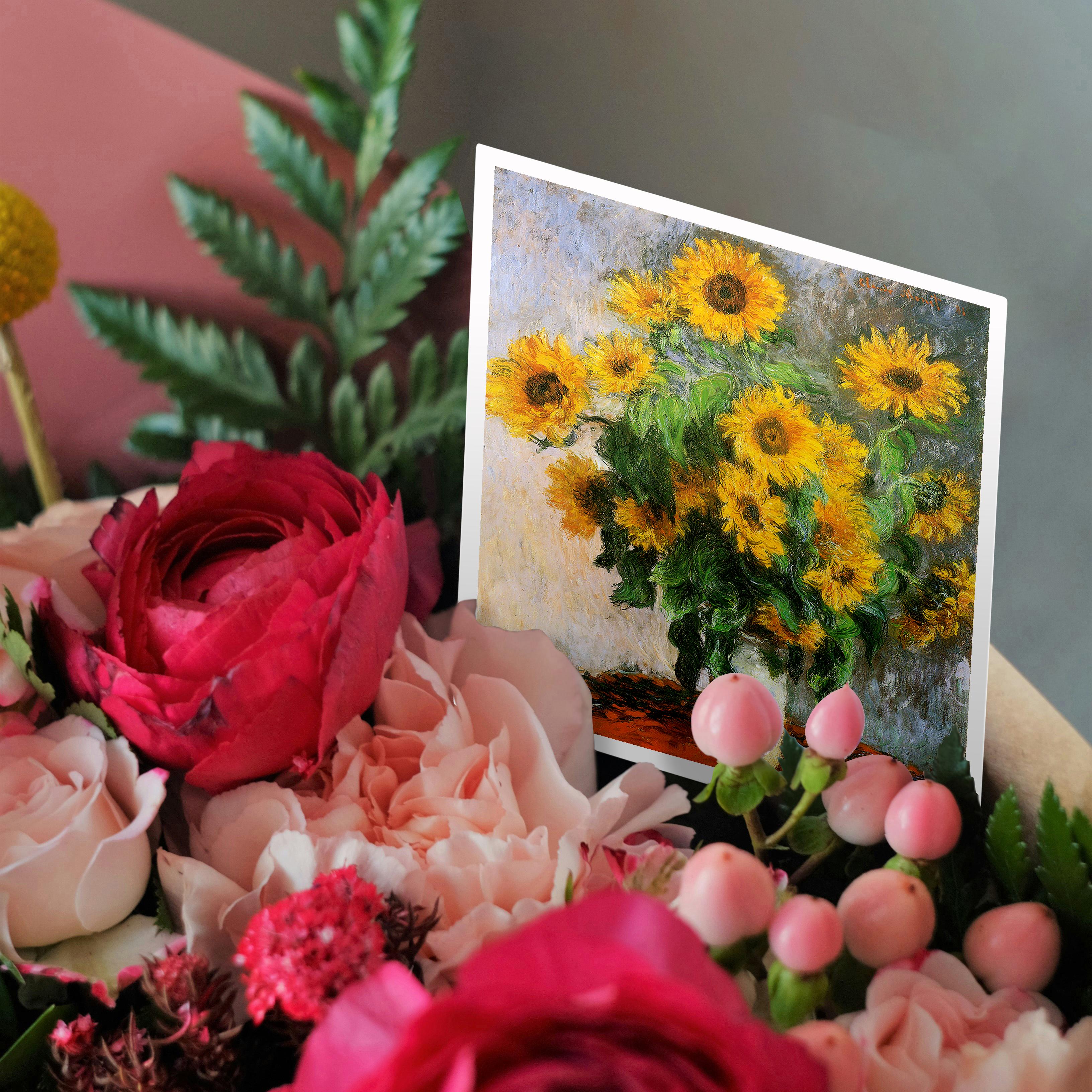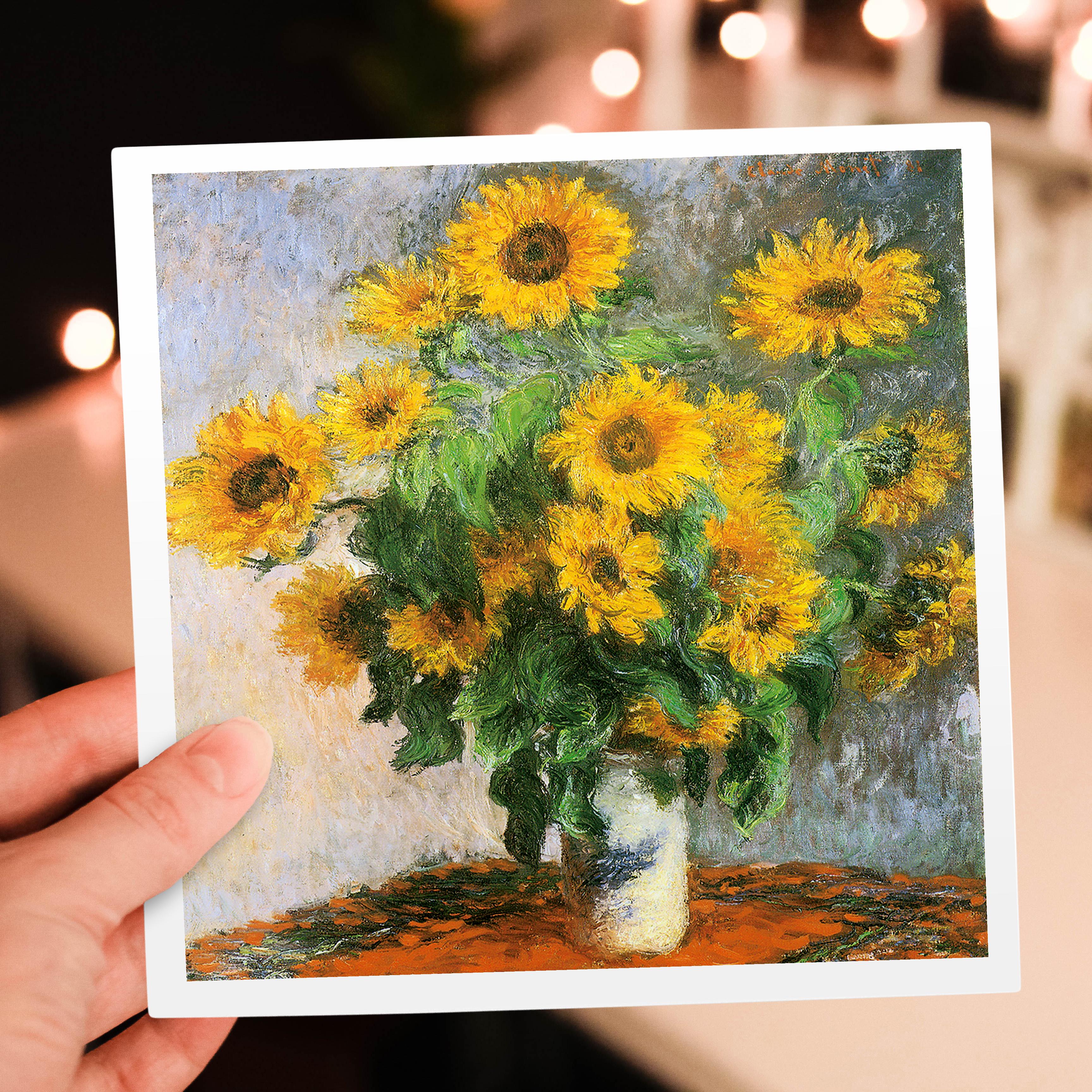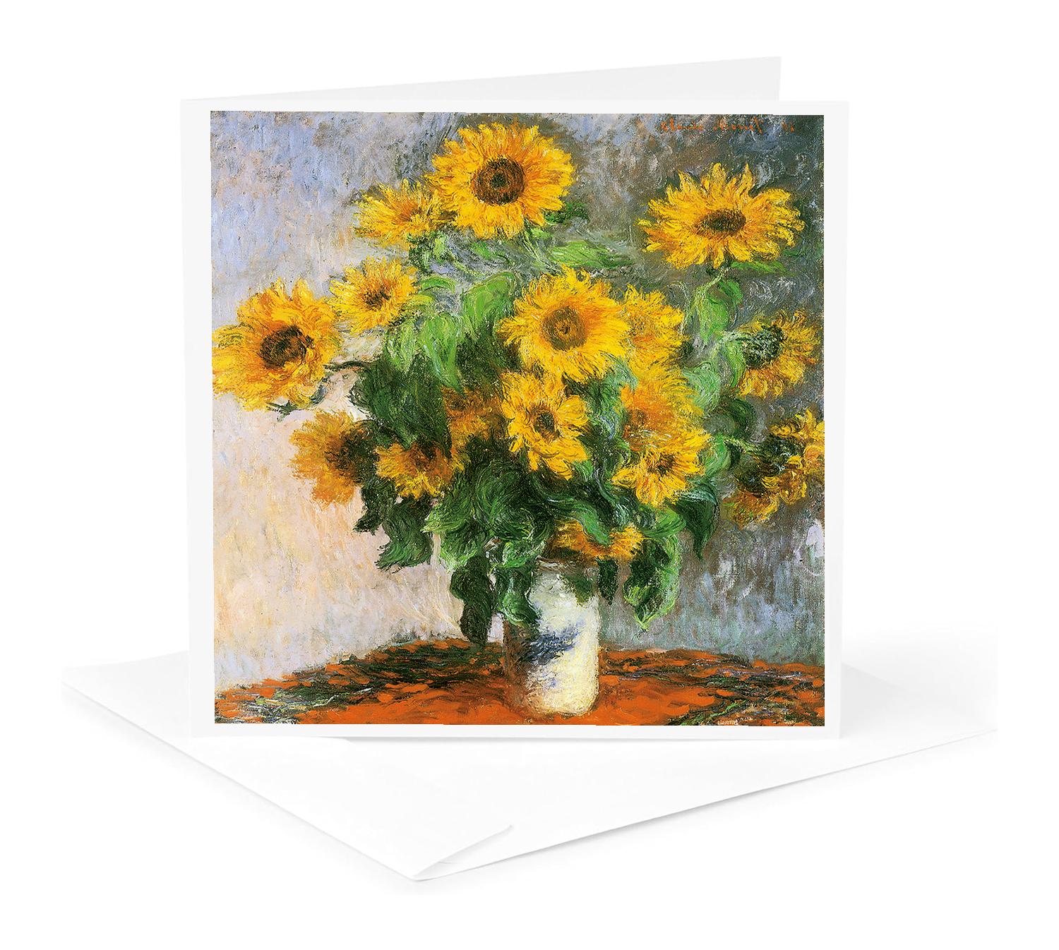 3dRose BLN Claude Monet Collection - Sunflowers by Claude Monet, 1881 Impressionist Still Life Painting - Greeting Cards (gc_126590)