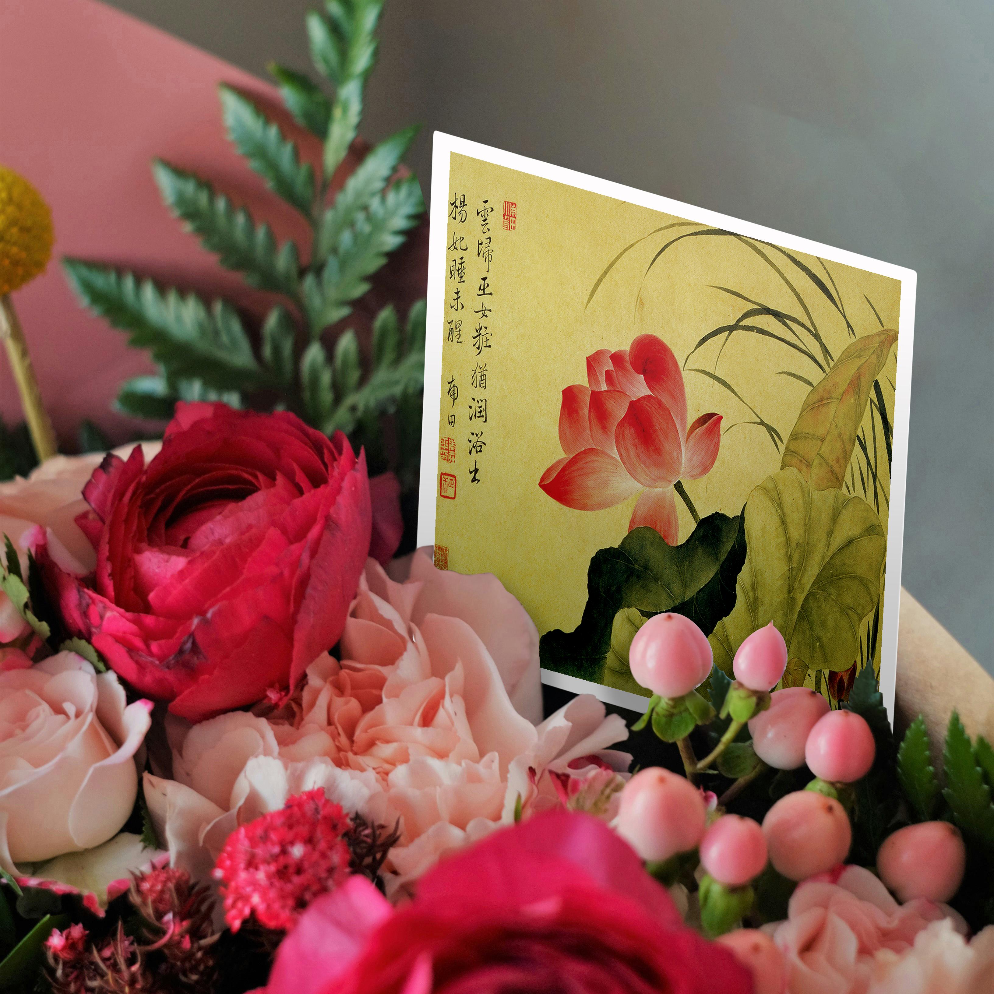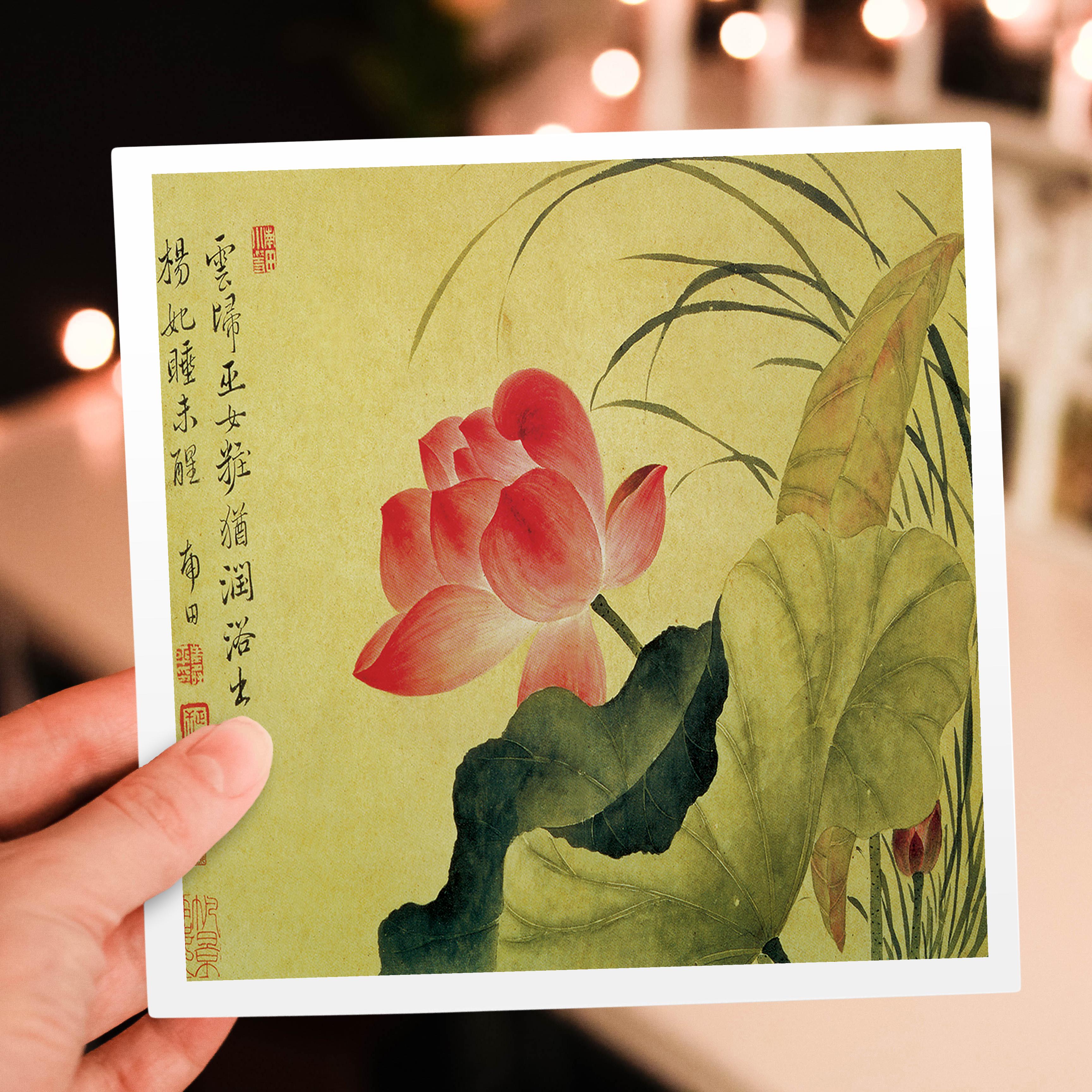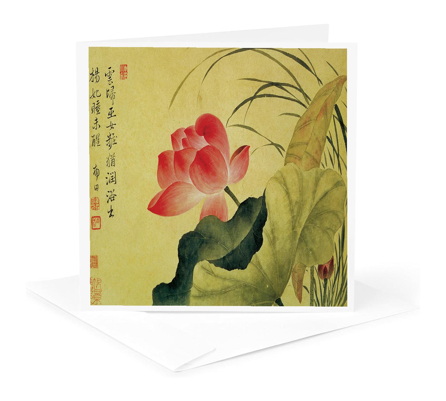 3dRose BLN Flower Paintings Fine Art Collection - Lotus Flower by Yun Shouping Japanese Art - Greeting Cards (gc_126518)