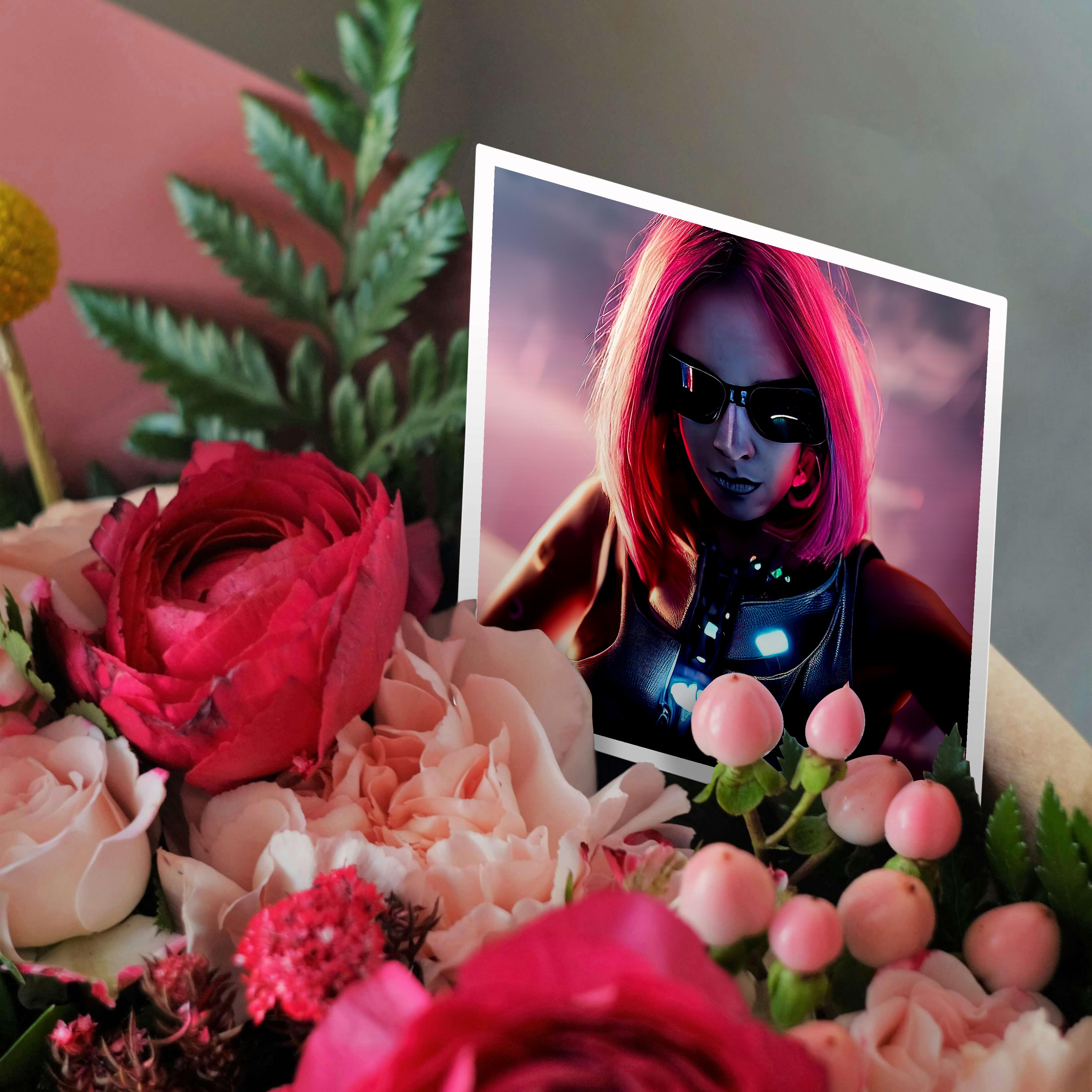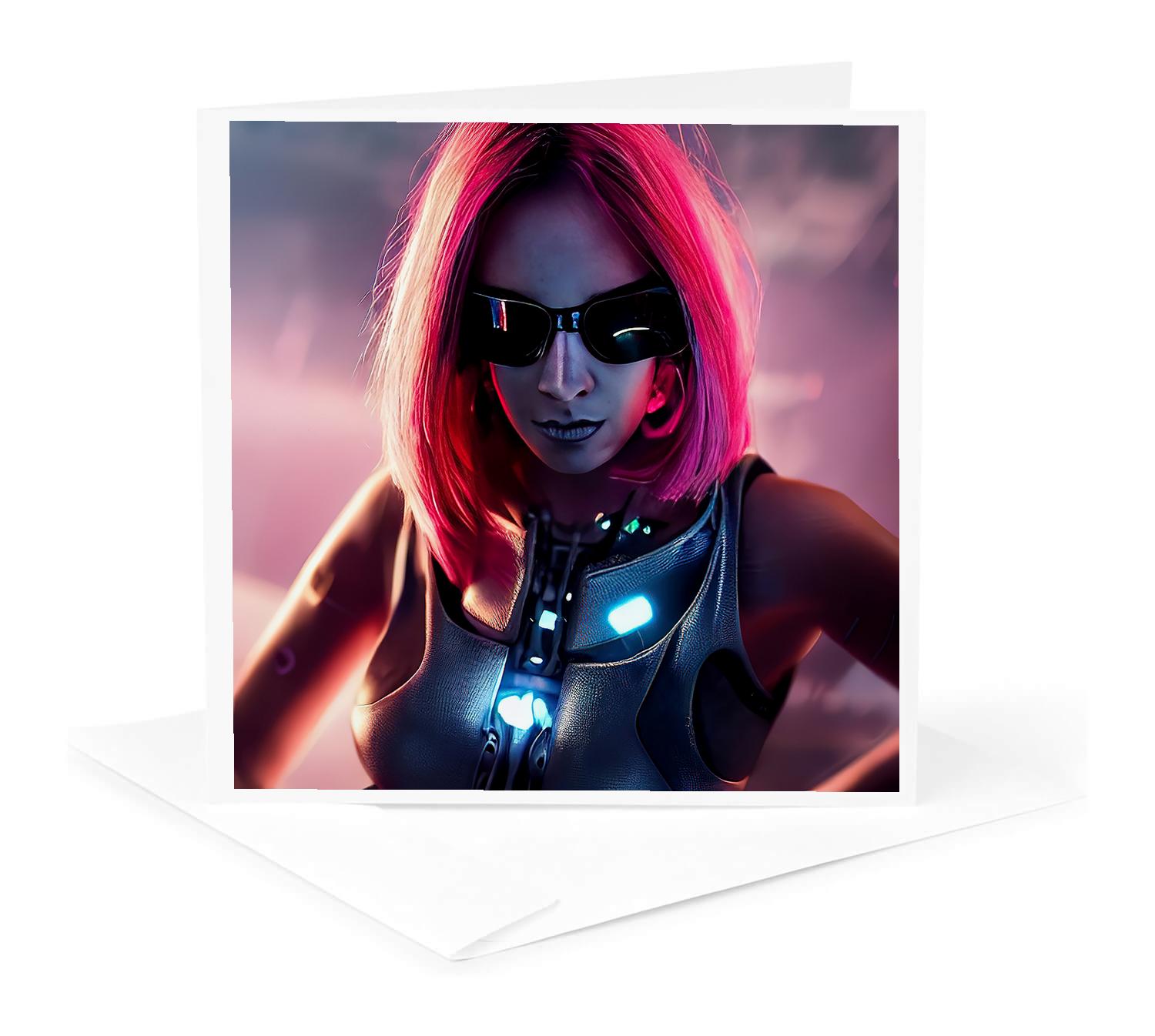 3dRose Cool fantastic cyborg woman with red hair in special glasses... - Greeting Cards (gc-377038)