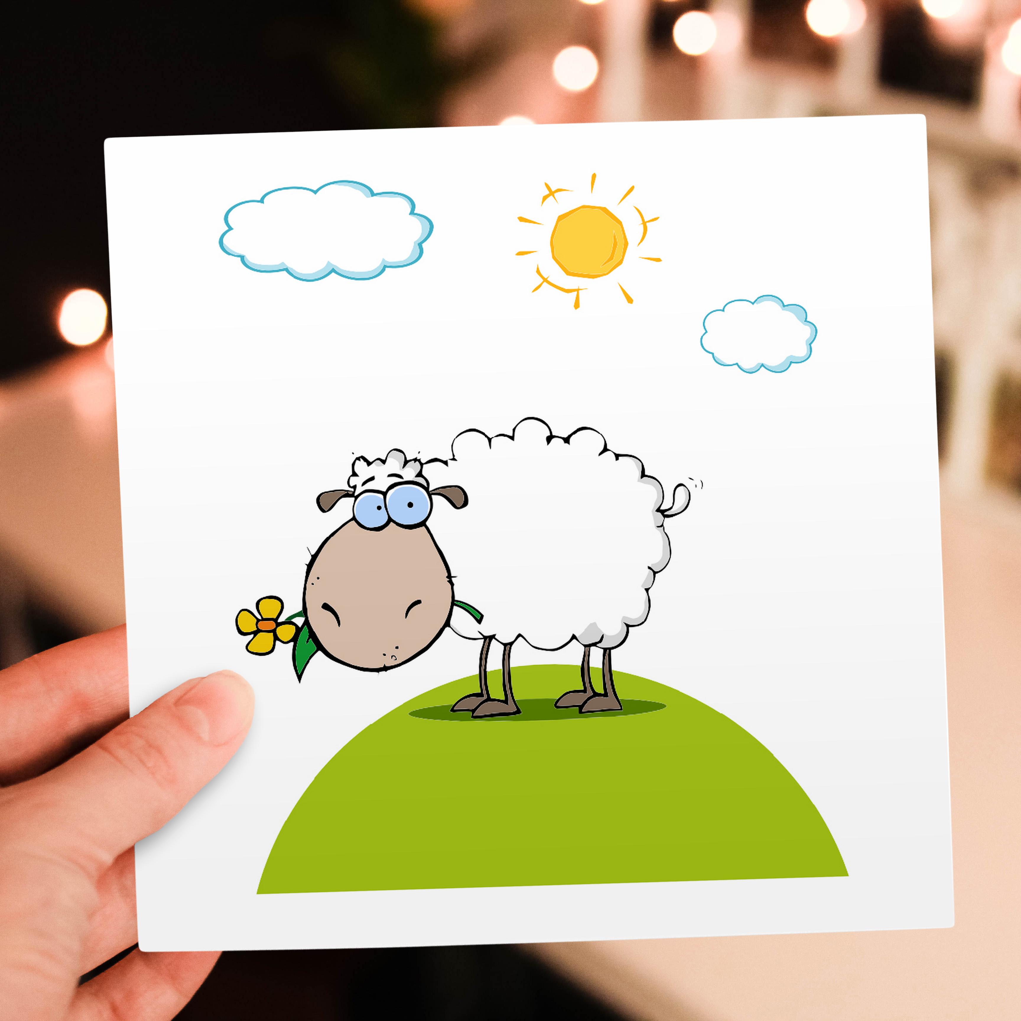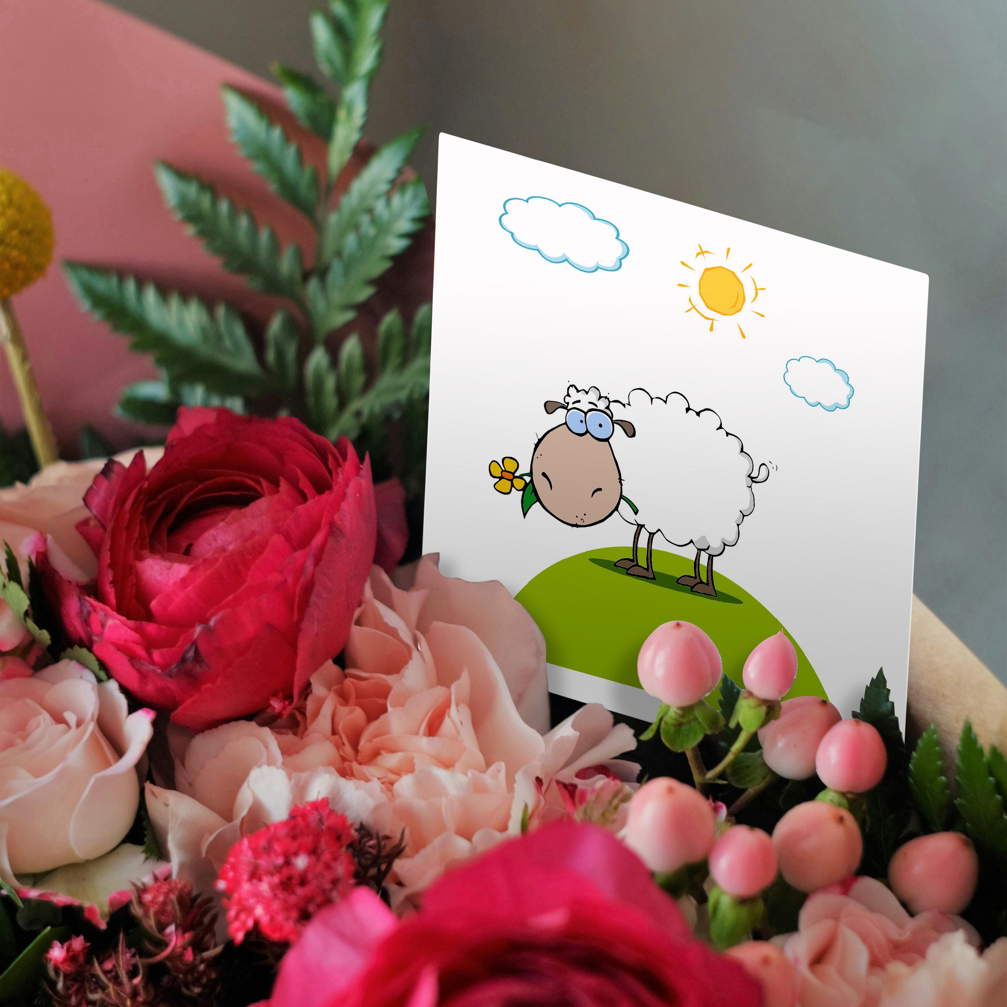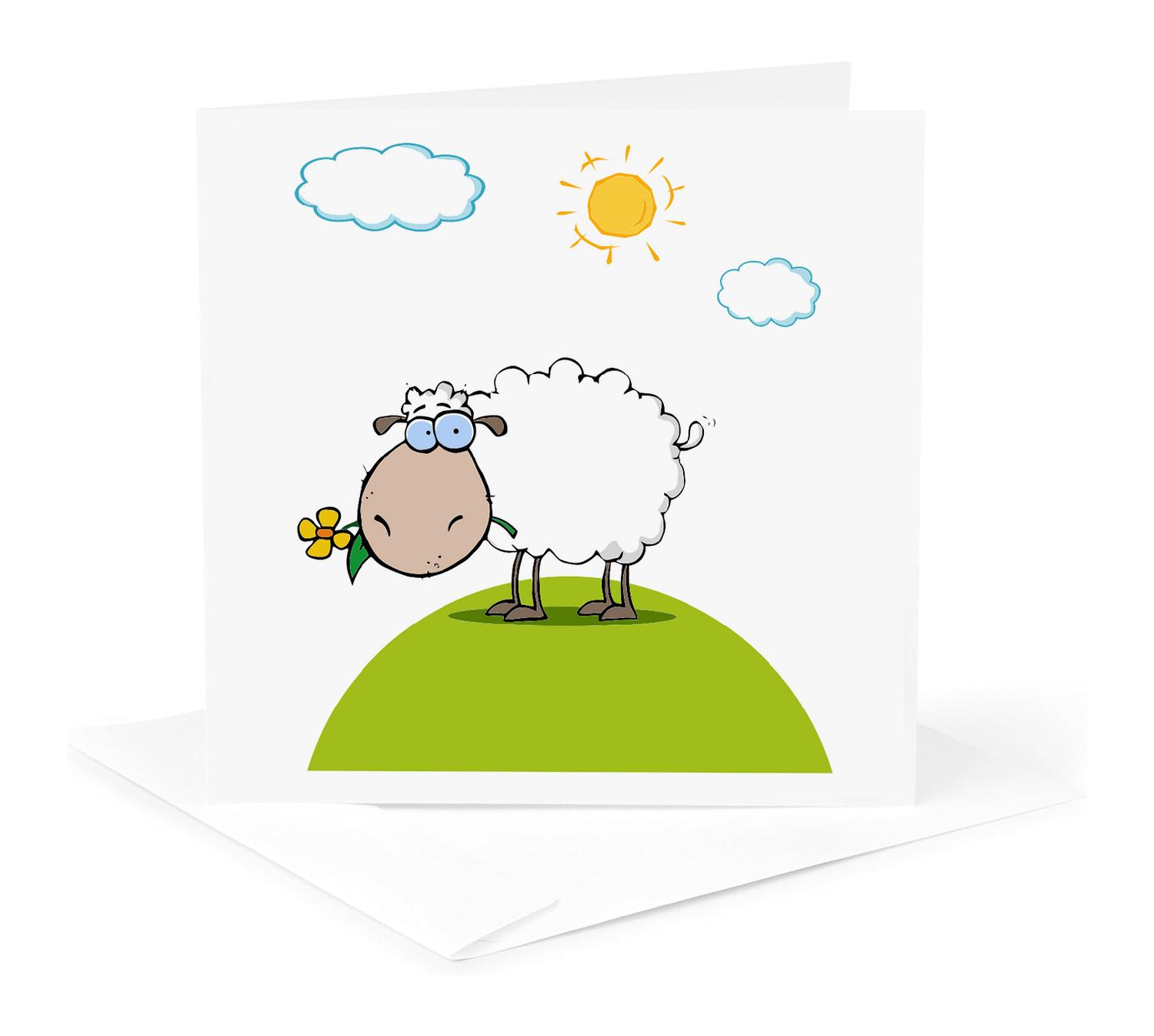 3dRose Dooni Designs More Random Cartoon Designs - Silly Sheep On A Hill With A Flower Funny Animal Cartoon - Greeting Cards (gc_118819)