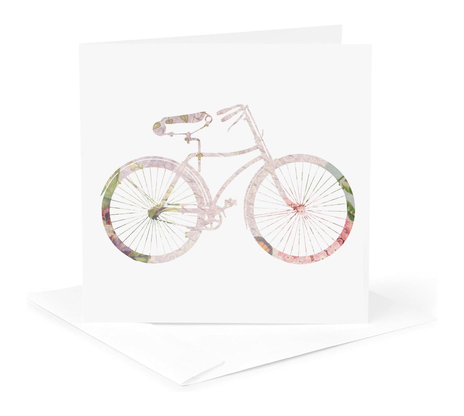 3dRose InspirationzStore Bicycles - Pink girly bicycle design - floral shabby chic bike on white - stylish pastel country rustic flowery - Greeting Cards (gc_112854)