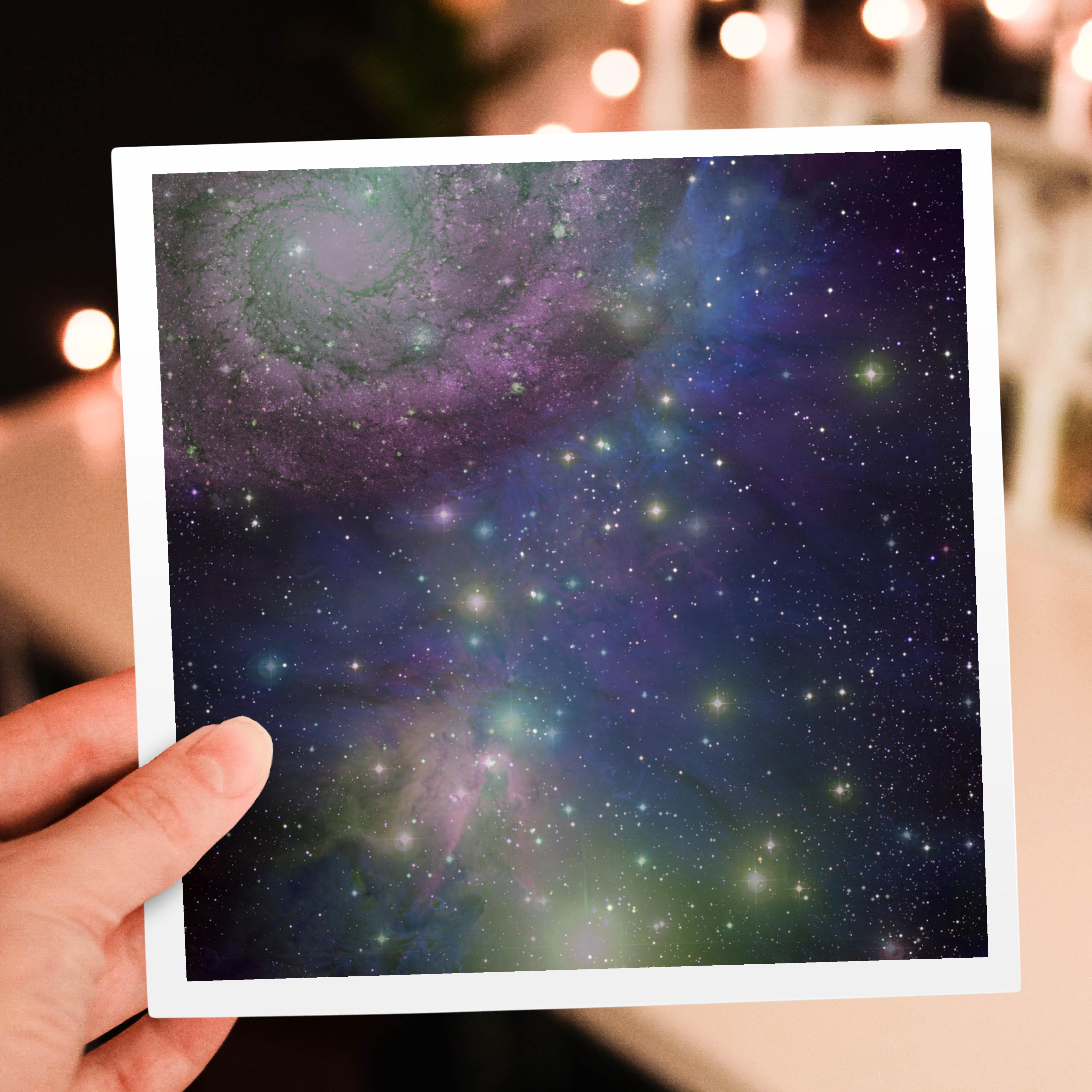 3dRose InspirationzStore Space designs - Stars galaxies and nebulas - navy night sky blue and purple space photography collage - astronomy - Greeting Cards (gc_112990)