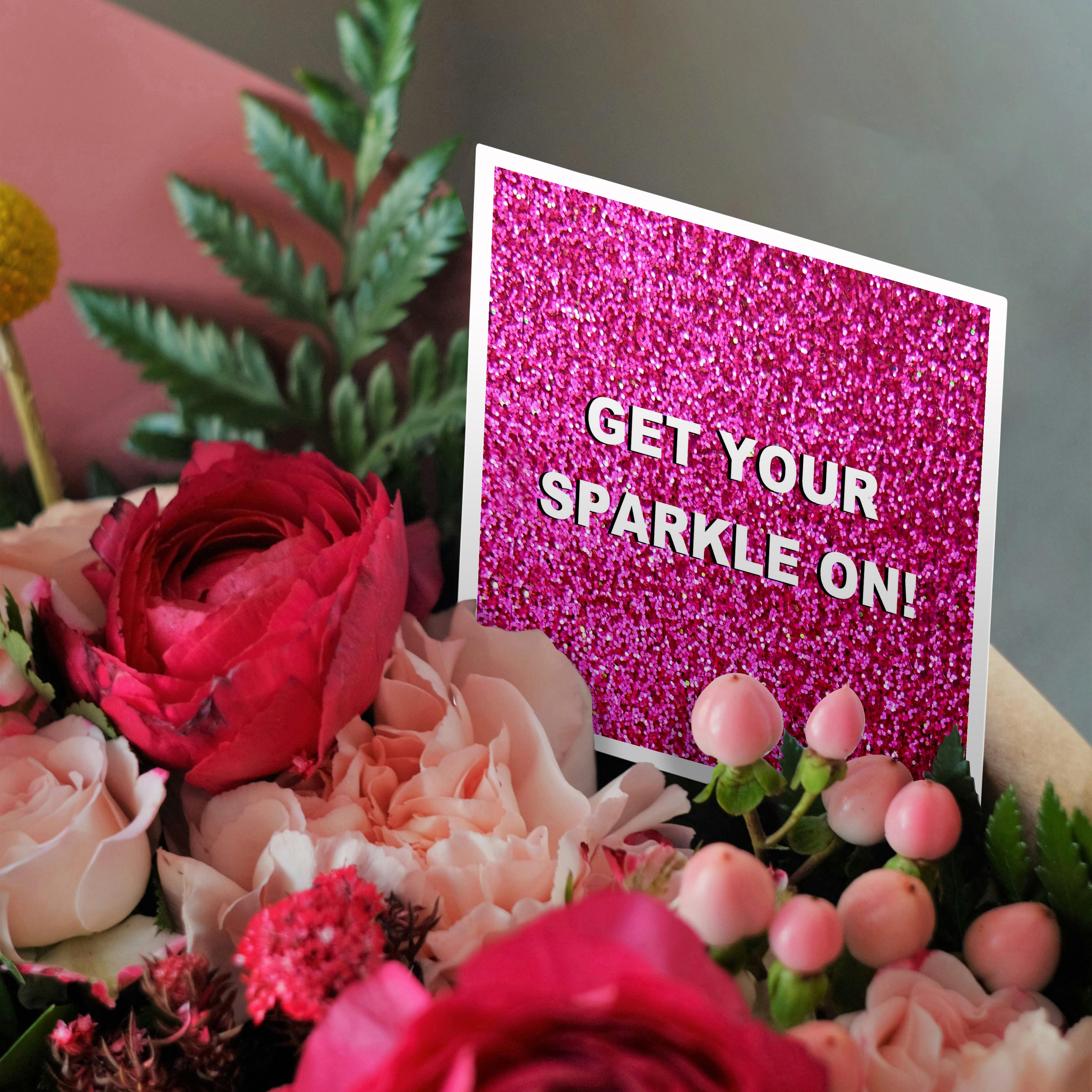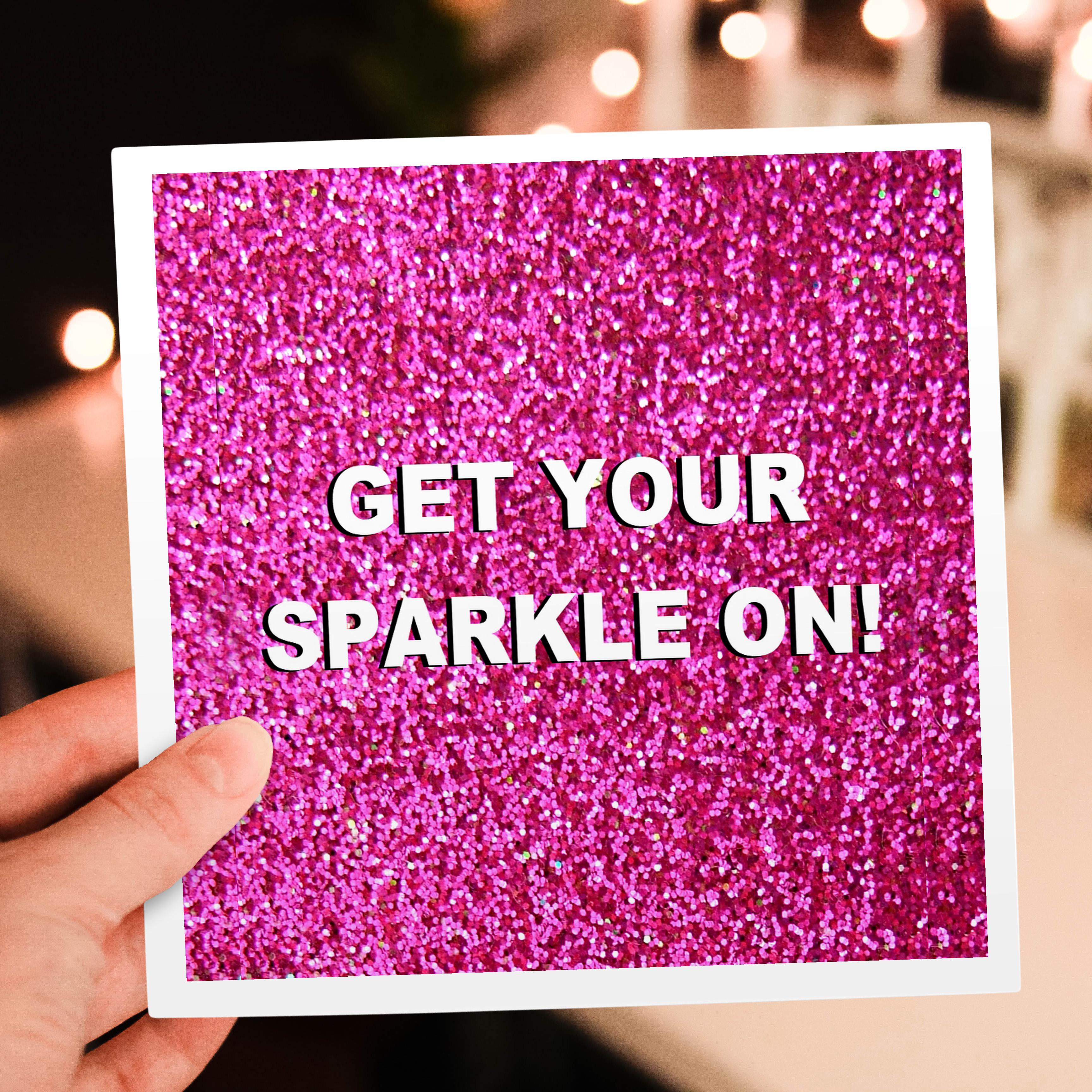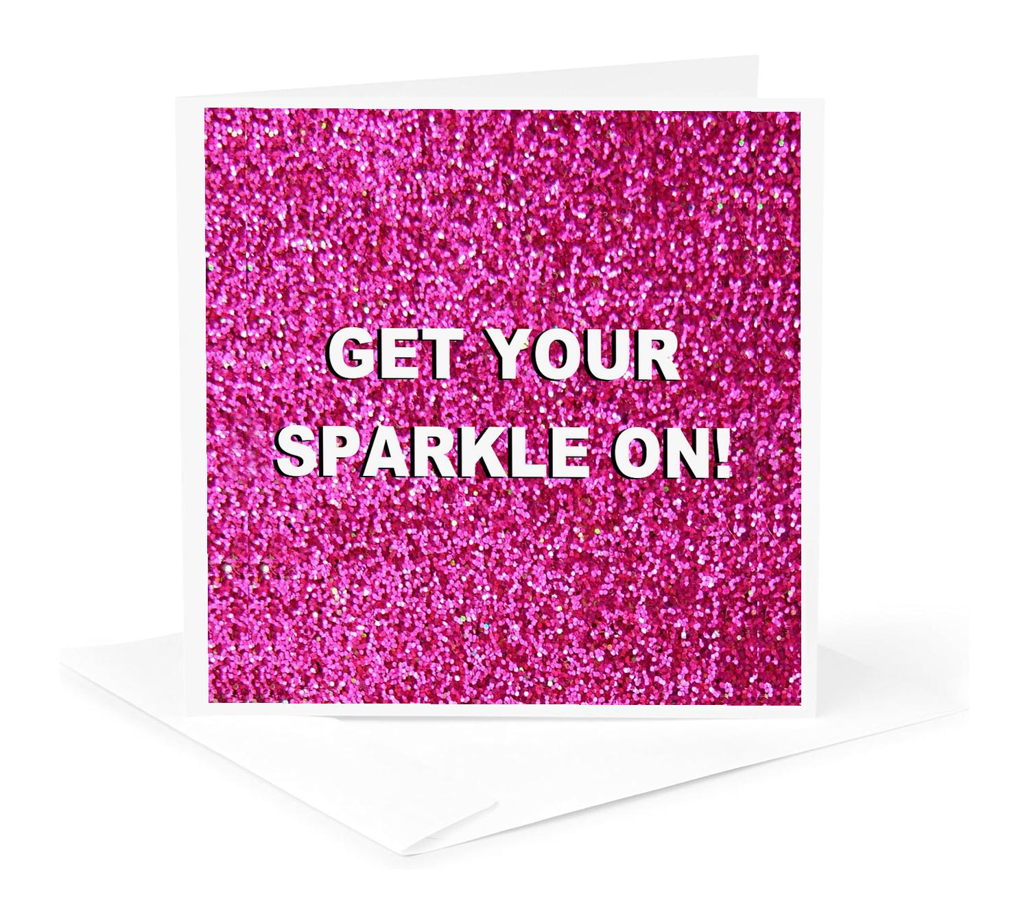 3dRose InspirationzStore Sparkles - Get your sparkle on - fun girly hot pink faux glitter texture graphic - glam girls humor - bling - Greeting Cards (gc_112890)