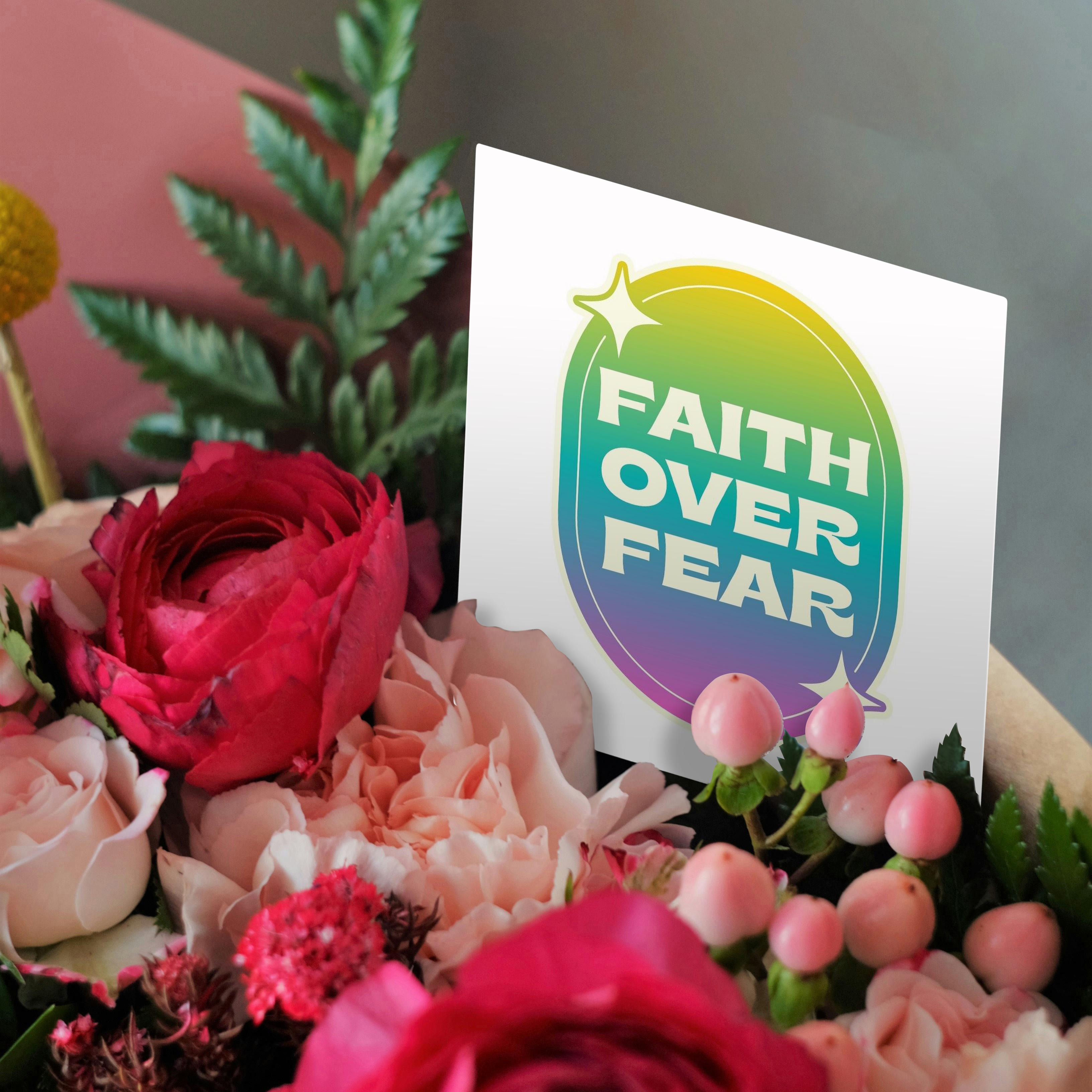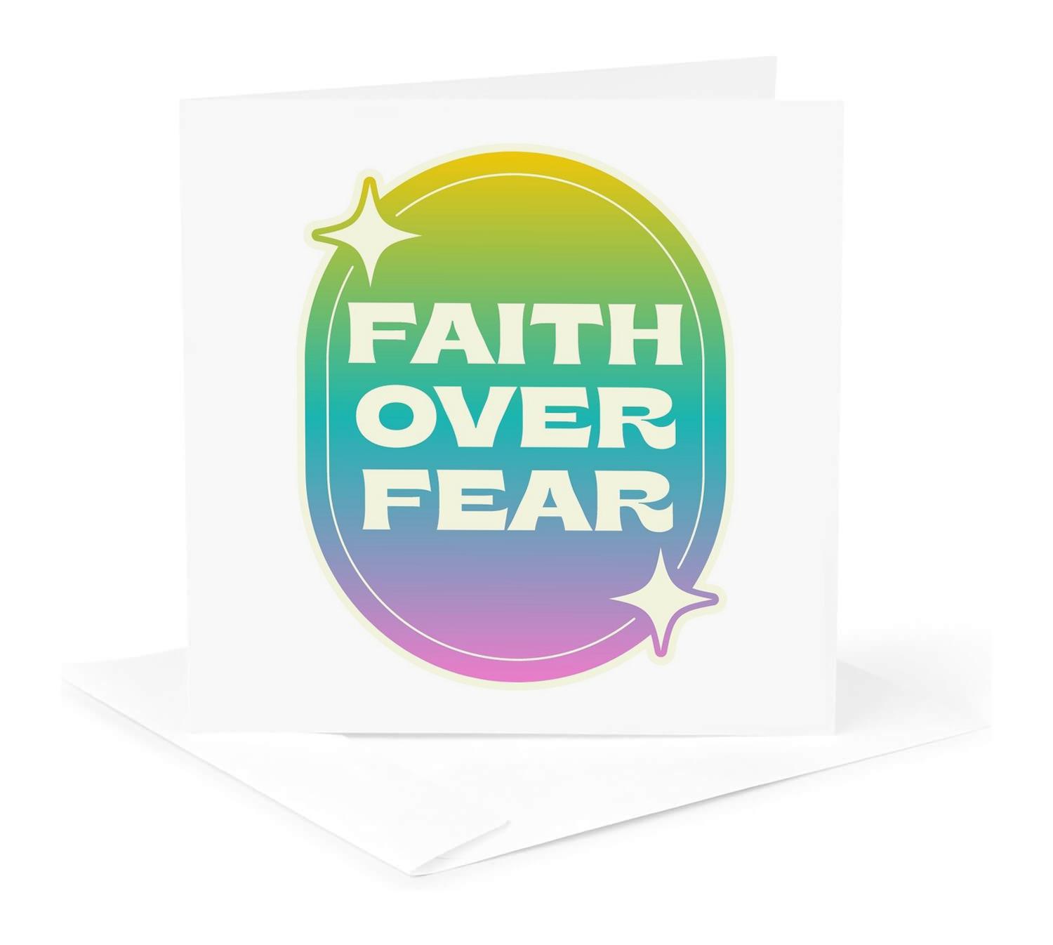 3dRose Rosette - Attitude - Faith Over Fear Neon Color - Greeting Cards (gc-372007)