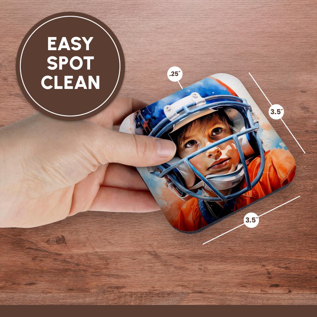 3dRose A Vibrant Painting of a Young boy in an American Football Helmet. - Coasters (cst-384823)