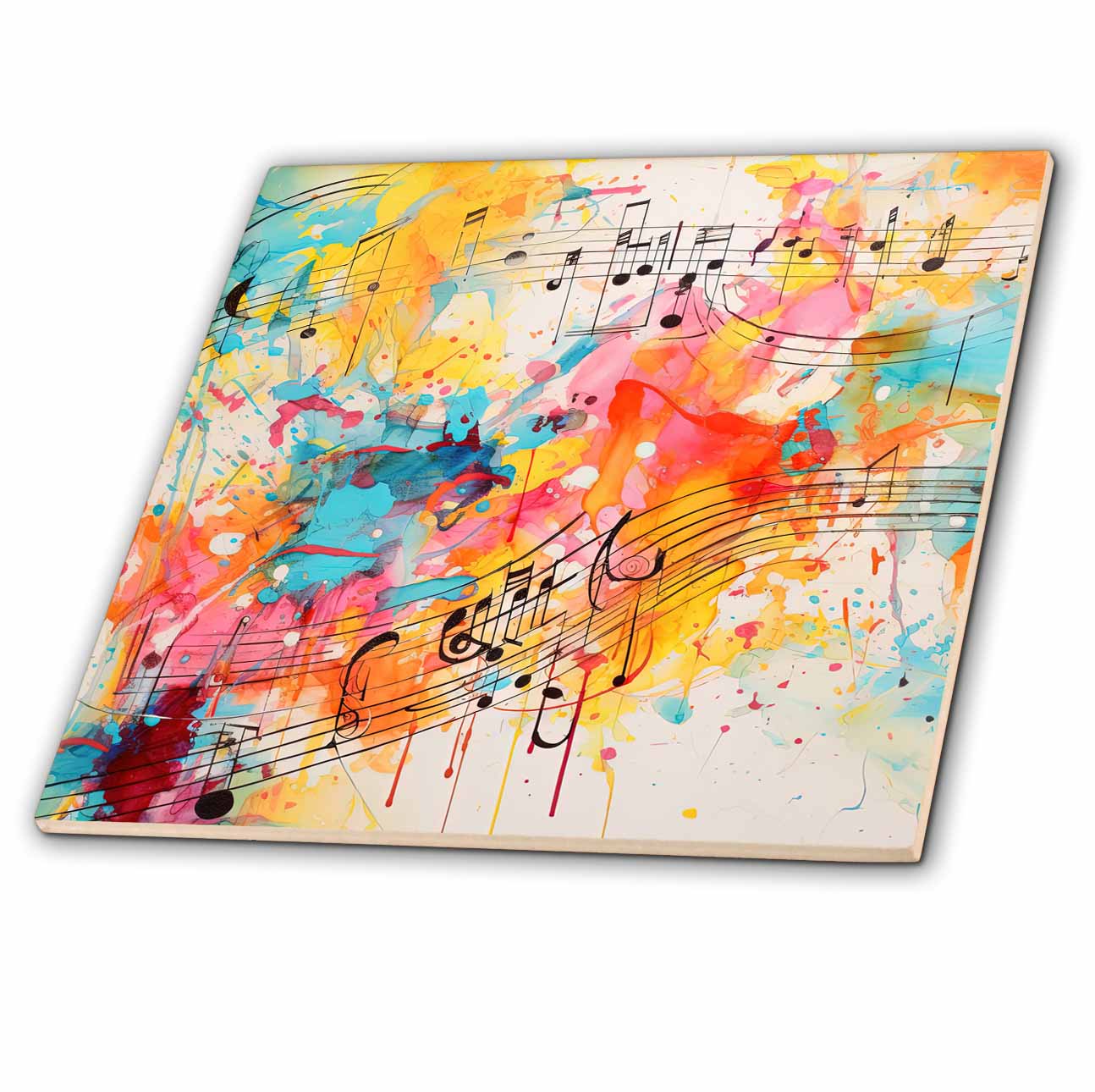 Abstract Paint and Musical Notes Background Tile is great for a backsplash, countertop or as an accent. This commercial quality construction grade tile has a high gloss finish. The image is applied to the top surface and can be cleaned with a mild detergent.