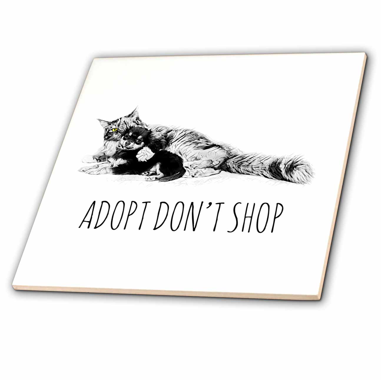 3dRose Alexis Design - Cat and Dog - A cat hugs a Smiling Chihuahua Dog. Adopt, do not Shop Text - Tiles (ct_320840)