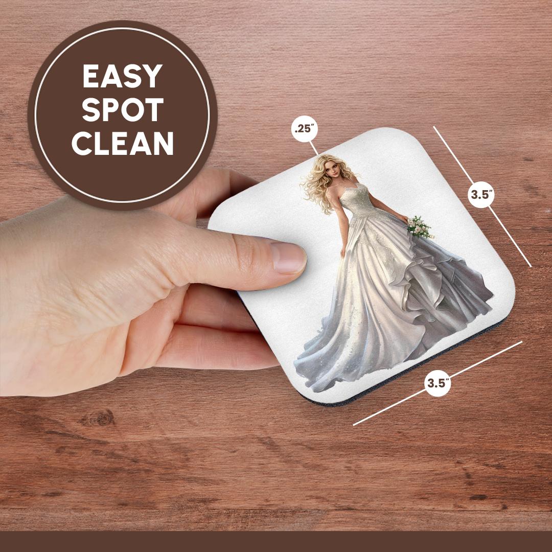 3dRose Anne Marie Baugh - Illustrations - Pretty Blonde Bride Illustration - Coasters (cst-383257)