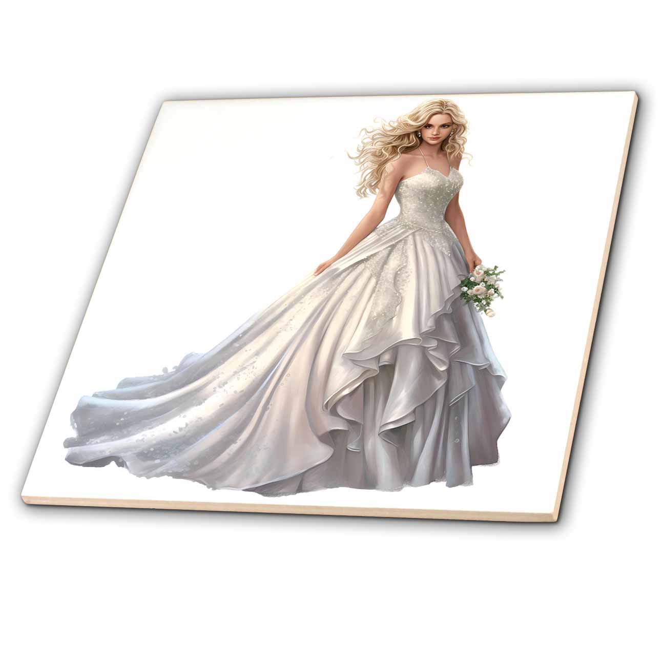3dRose Anne Marie Baugh - Illustrations - Pretty Blonde Bride Illustration - Tiles (ct-383257)