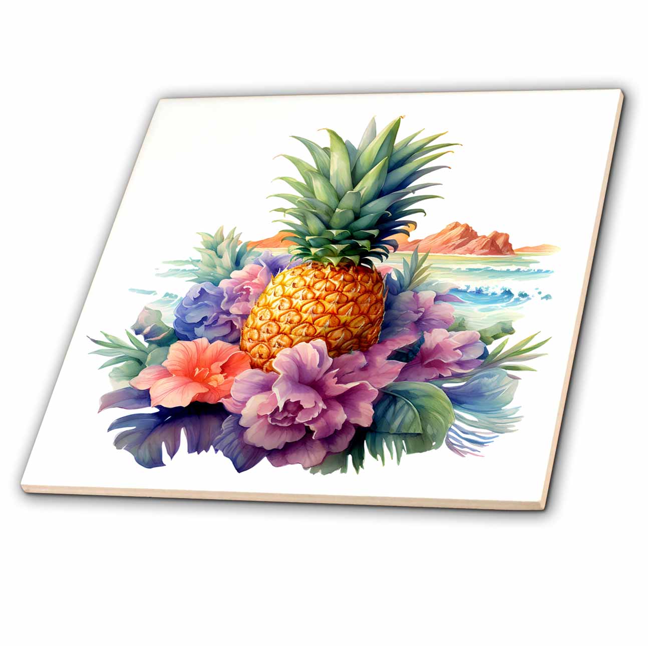 3dRose Anne Marie Baugh - Illustrations - Pretty Floral Pineapple Illustration - Tiles (ct-383322)