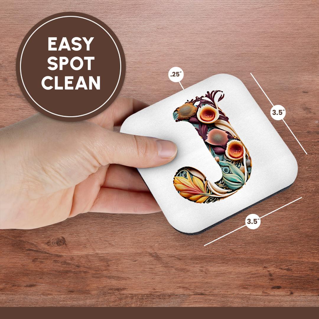 3dRose Anne Marie Baugh - Monograms - Boho Floral Monogram Initial J - Coasters (cst-383736)