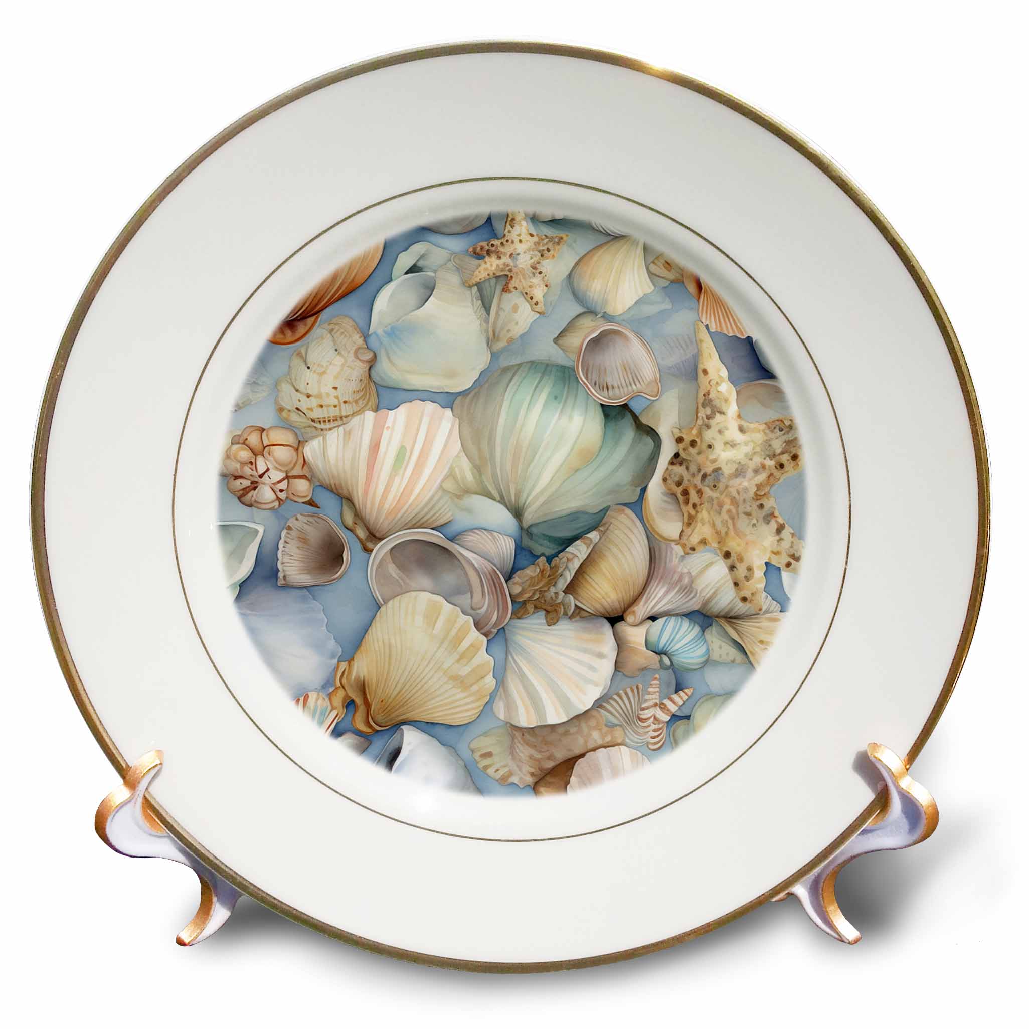 3dRose Backgrounds - Anne Marie Baugh - Pretty Pastel Seashell Background - Plates (cp-384227)