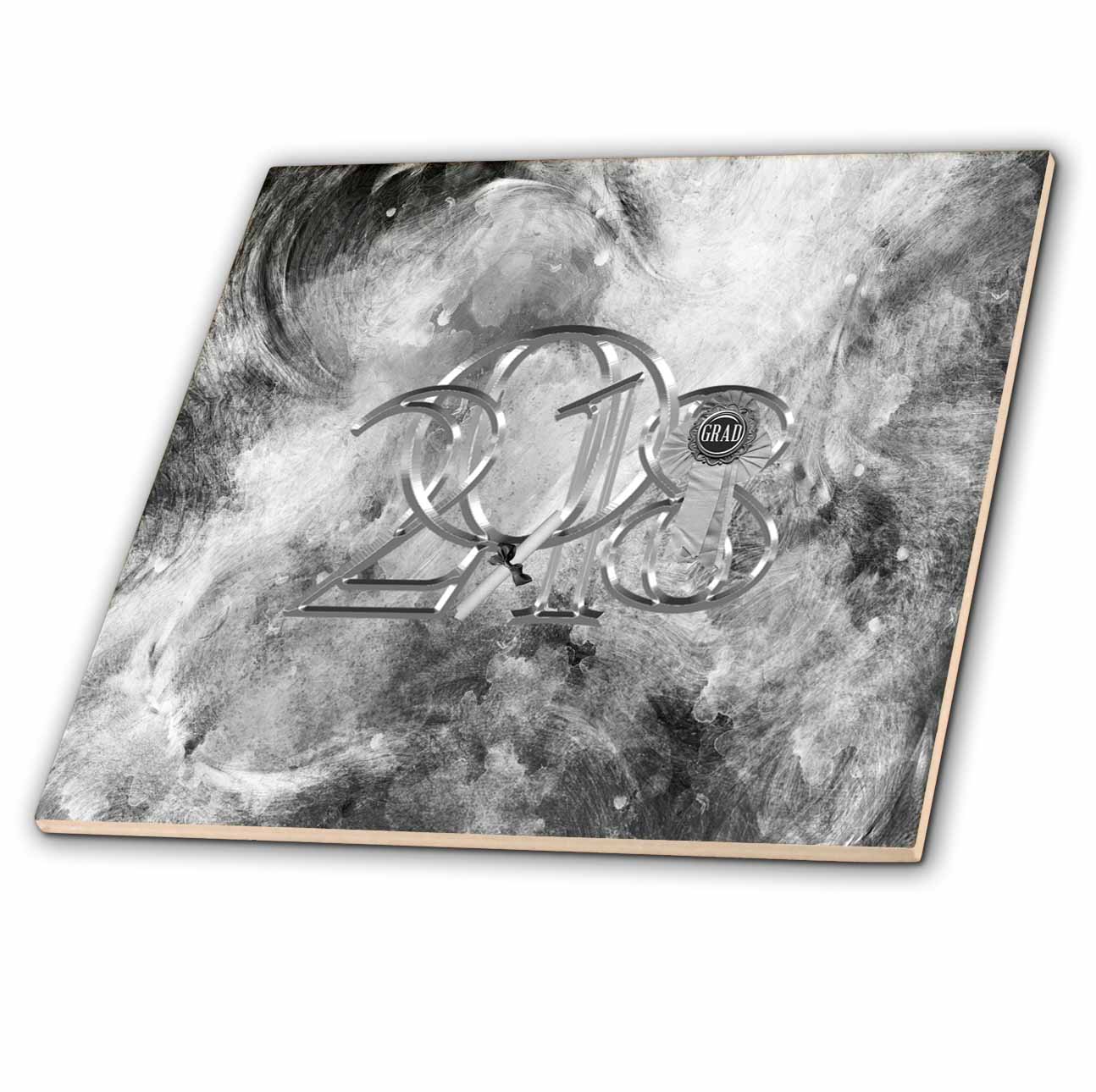 3dRose Beverly Turner Graduation Design - 2018 Metal Look Grad Ribbon, Diploma Leaning on The Number One, Silver - Tiles (ct_276149)