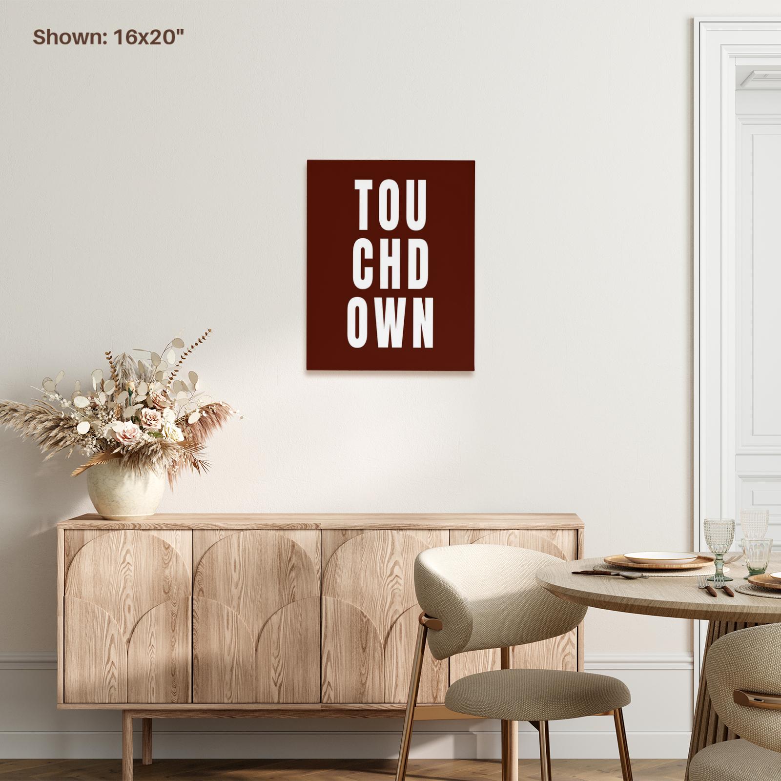 Brown Touchdown Text Personalized American Football Gift for Players and Fans Museum Grade Canvas Wrap is taking the printmaking world by storm with visually stunning color reproduction and long lasting archival properties. Known industry-wide for its consistency, premium canvas wrap exhibits exceptional quality utilizing ultra-high definition printing. Professionally stretched over a sturdy 1.2" wooden frame this canvas wrap will last a lifetime. Canvas Wraps offer a beautiful addition to your wall art collection. Unlike traditional photographs and prints our high quality canvas material has a UVA-protected coating that prevents fading. 3dRose canvas wrap is well suited as a personal home decor, that can be used in your living room, bedroom, kitchen, bathroom, or office. Great as a personalized memories gift at a wedding, anniversary, birthday, or any other event worth remembering which will be cherished for a lifetime. 3dRose canvas wrap is proudly manufactured in USA offering unmatched quality.