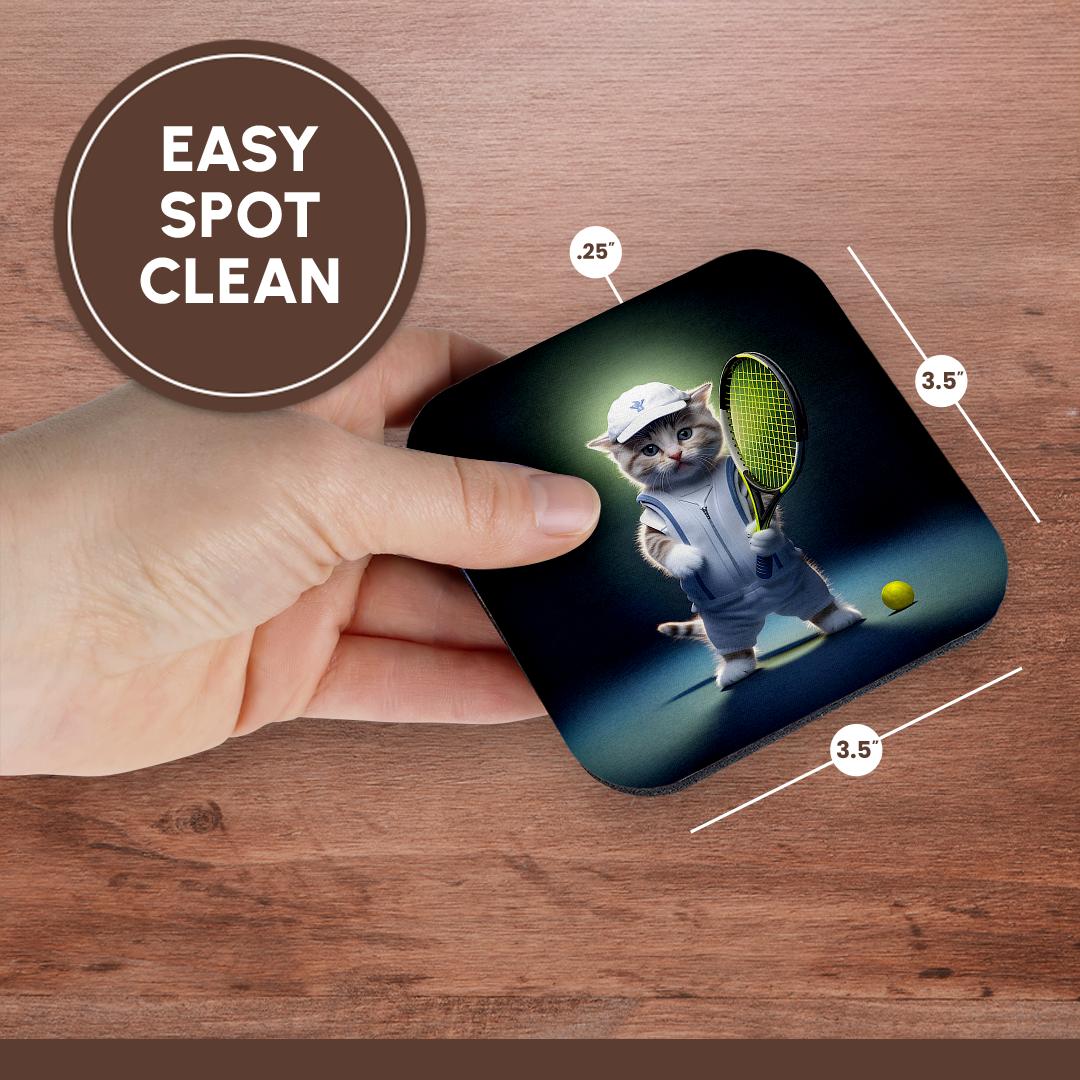 3dRose CR Media - Illustrations - Adorable Kitten Dressed as a Tennis Player - Coasters (cst-385450)