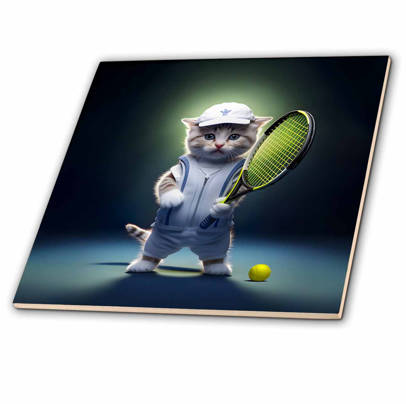 3dRose CR Media - Illustrations - Adorable Kitten Dressed as a Tennis Player - Tiles (ct-385450)
