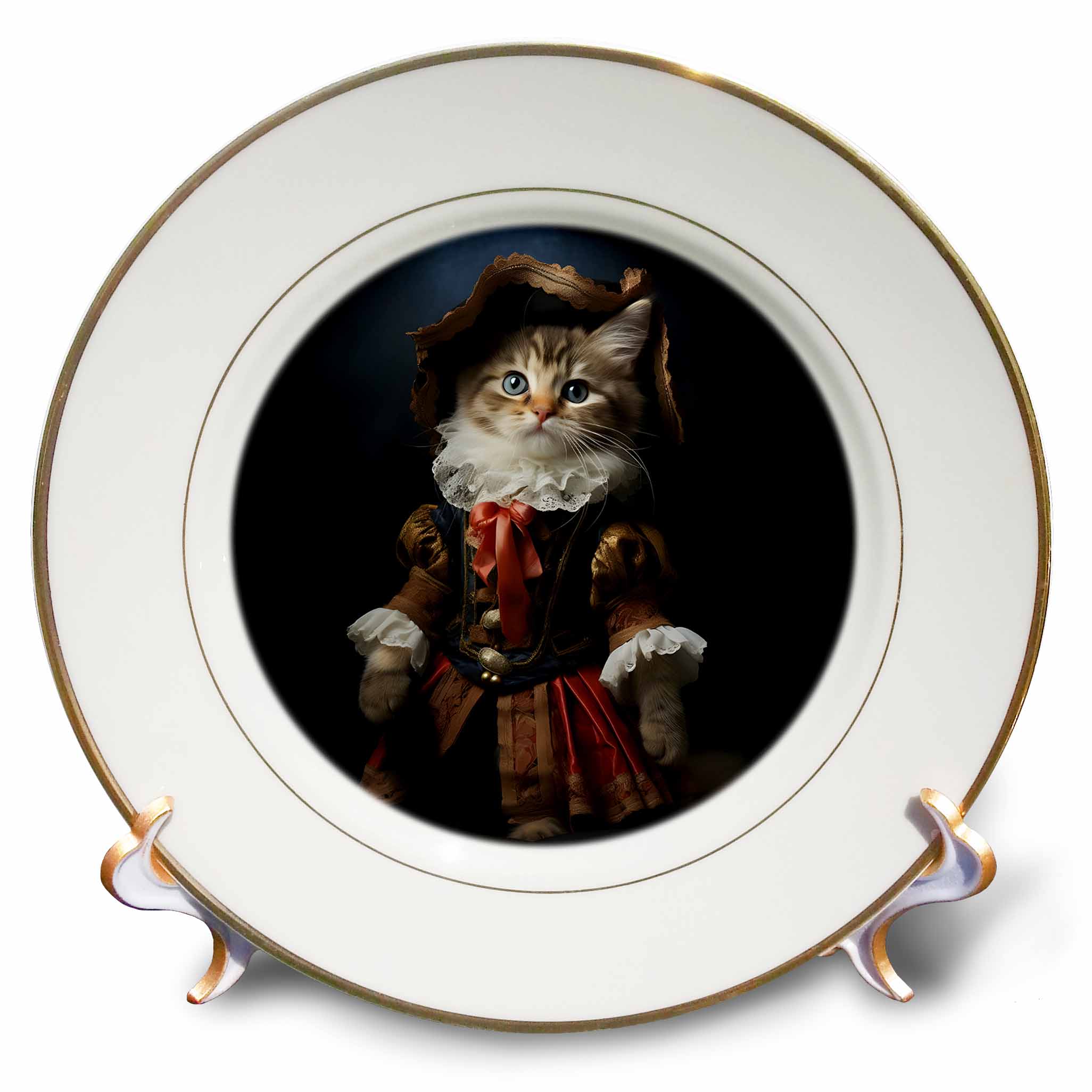 3dRose CR Media - Illustrations - Kitten Dressed in a Baroque Dress - Plates (cp-385461)