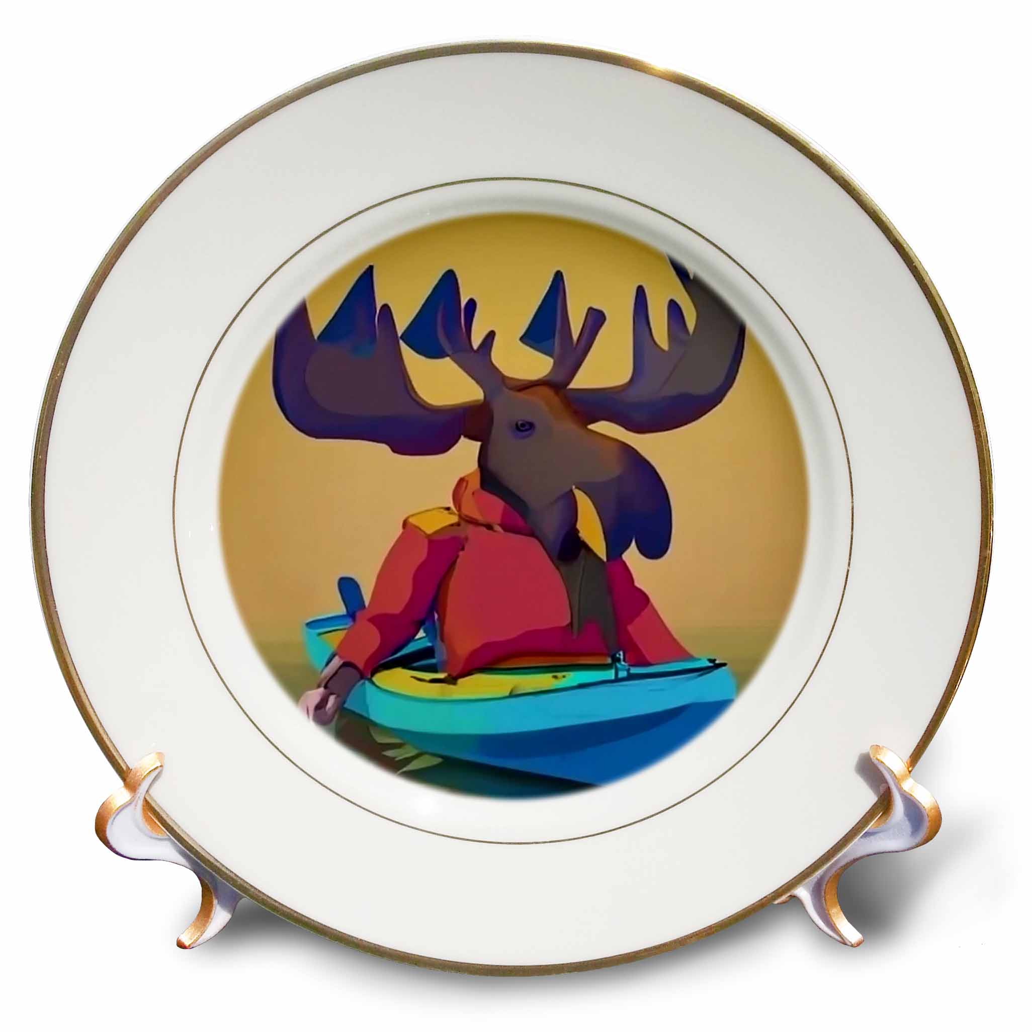 3dRose Cute Funny Moose Kayaking Kayak Nature Cubism Style - Plates (cp-385119)
