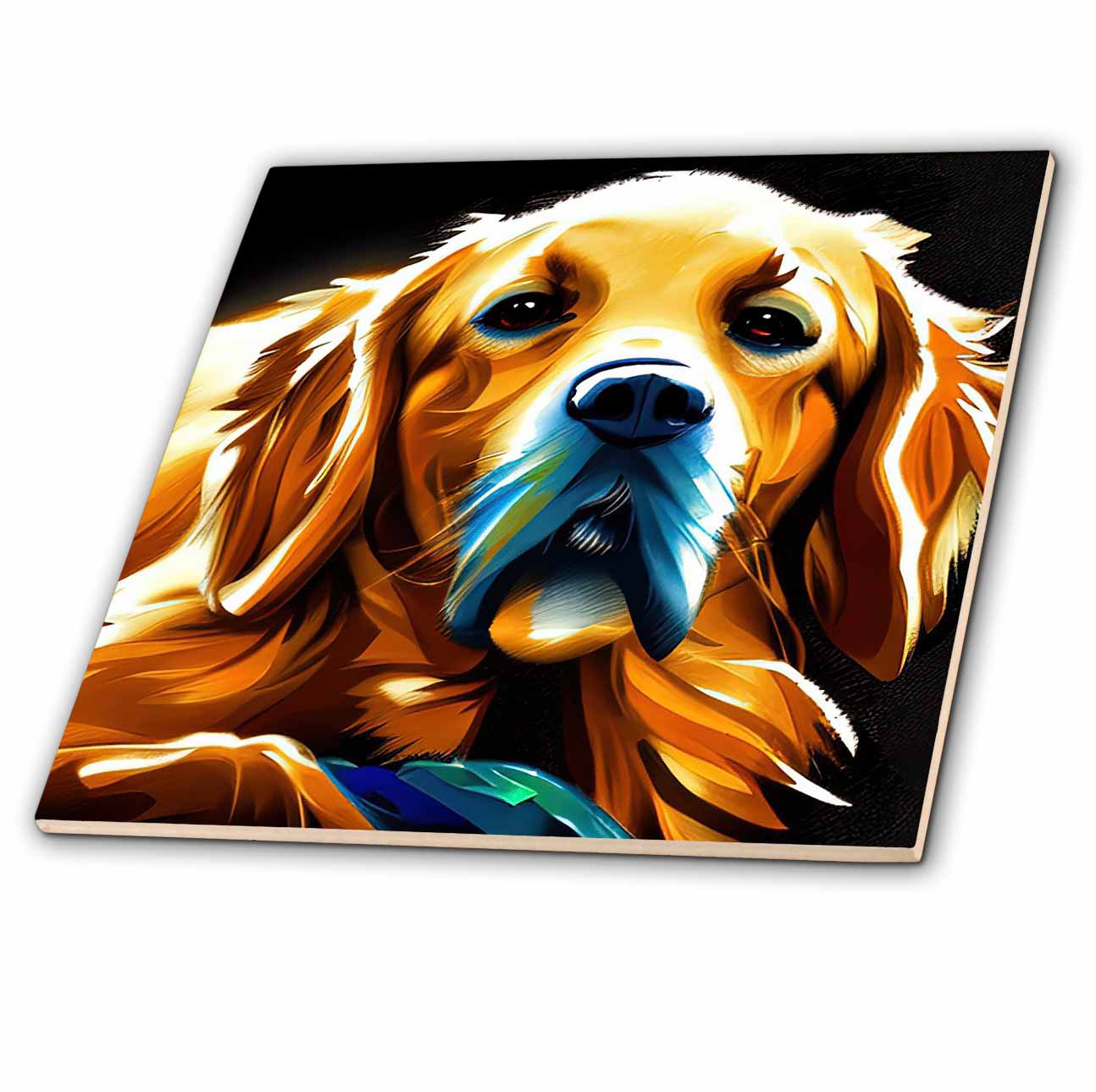 3dRose Cute Golden Retriever Dog Portrait on Black. Digital Painting Gift - Tiles (ct-376125)