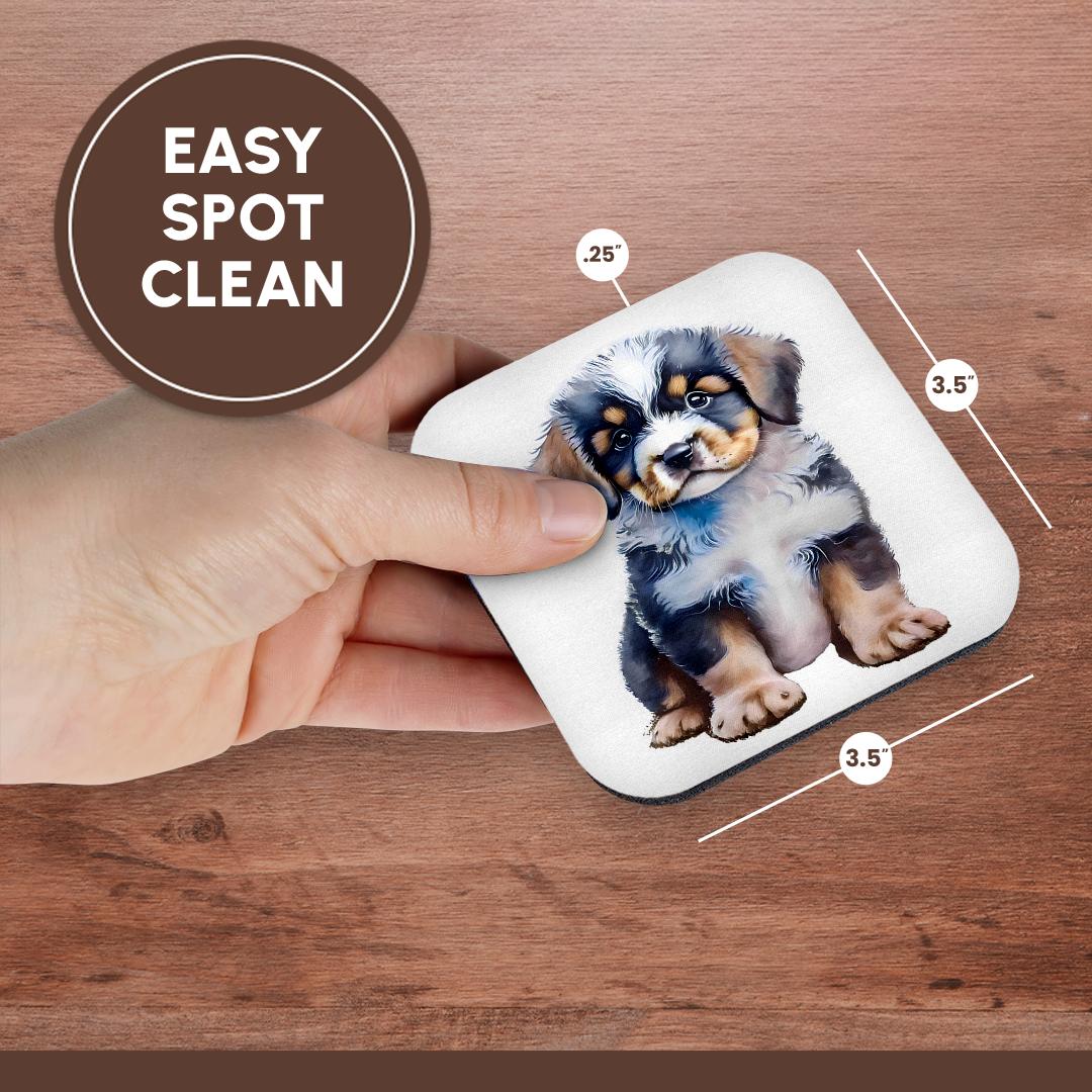 Cute St. Bernard Puppy Illustration Coaster is a great complement to any home décor. Soft coasters are 3.5" x 3.5", are absorbent, and can be washed. Ceramic coasters are 4.25" x 4.25", non absorbent and come with felt corner pads. Available in sets of 4 and 8.