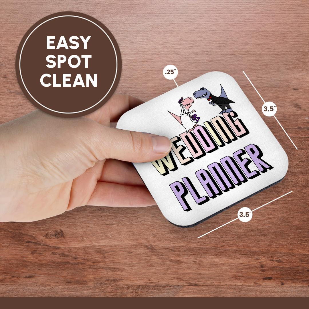 3dRose Cutel funny Wedding Planner Text with Trex Dinosaur Bride and Groom - Coasters (cst-382624)