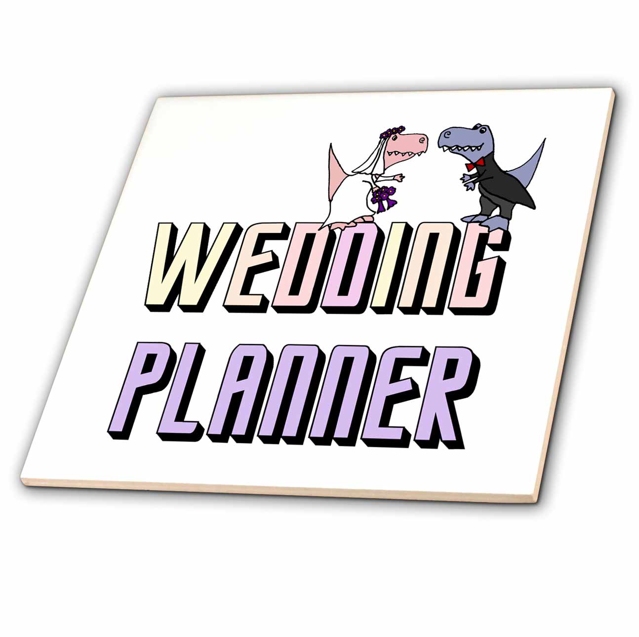 3dRose Cutel funny Wedding Planner Text with Trex Dinosaur Bride and Groom - Tiles (ct-382624)