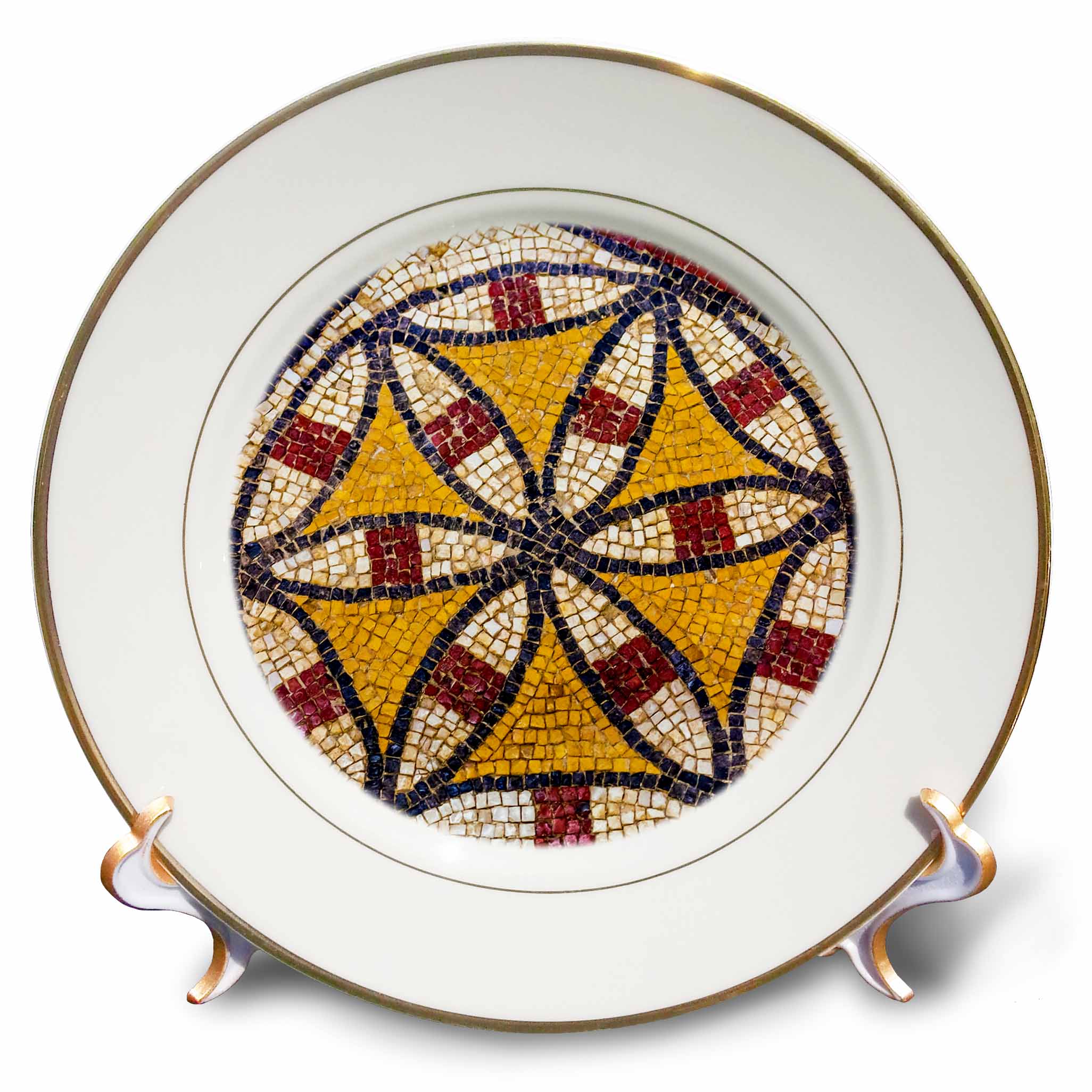 3dRose Danita Delimont - Artwork - Ancient 6th Century Crusader Cross Mosaic in a Church, Mt Nebo, Jordan - Plates