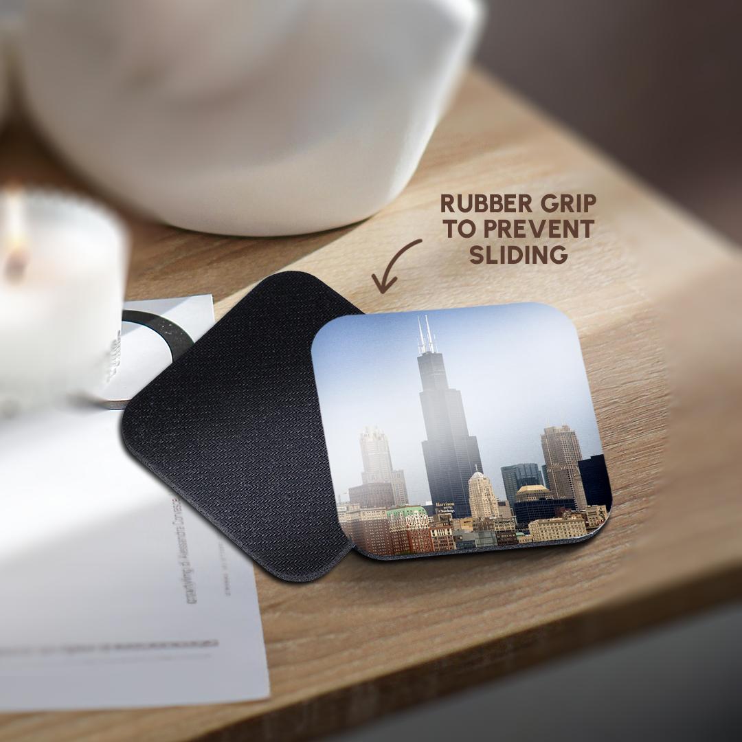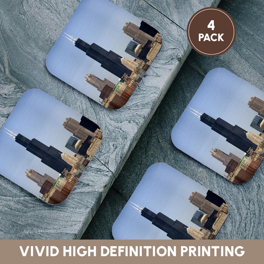 3dRose Danita Delimont - Chicago - Willis and Sears Tower, Chicago River, IL - US14 DFR0095 - David R. Frazier - Coasters (cst_90187)