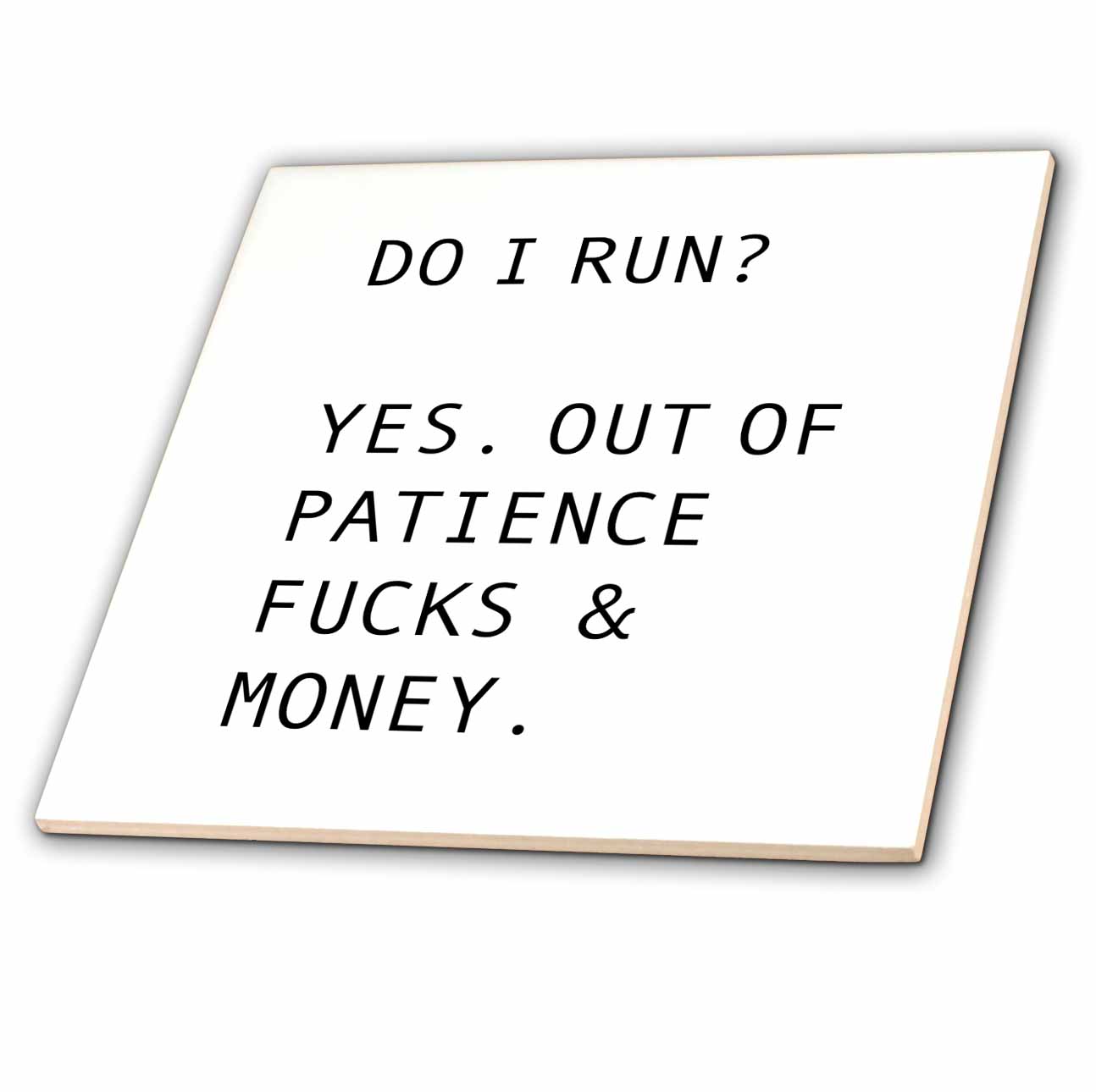 Do I Run Yes Out Of Patience Fucks And Money Tile is great for a backsplash, countertop or as an accent. This commercial quality construction grade tile has a high gloss finish. The image is applied to the top surface and can be cleaned with a mild detergent.