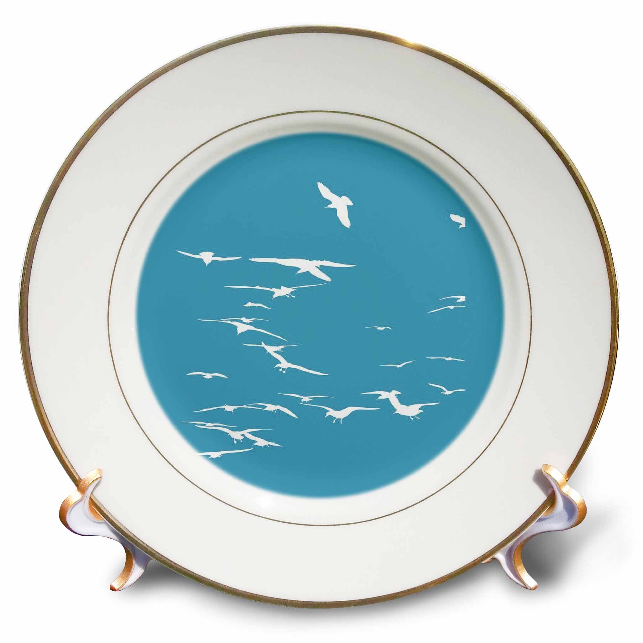 3dRose Happy Seagulls Flying In The Sky White Silhouette - Plates (cp-383465)