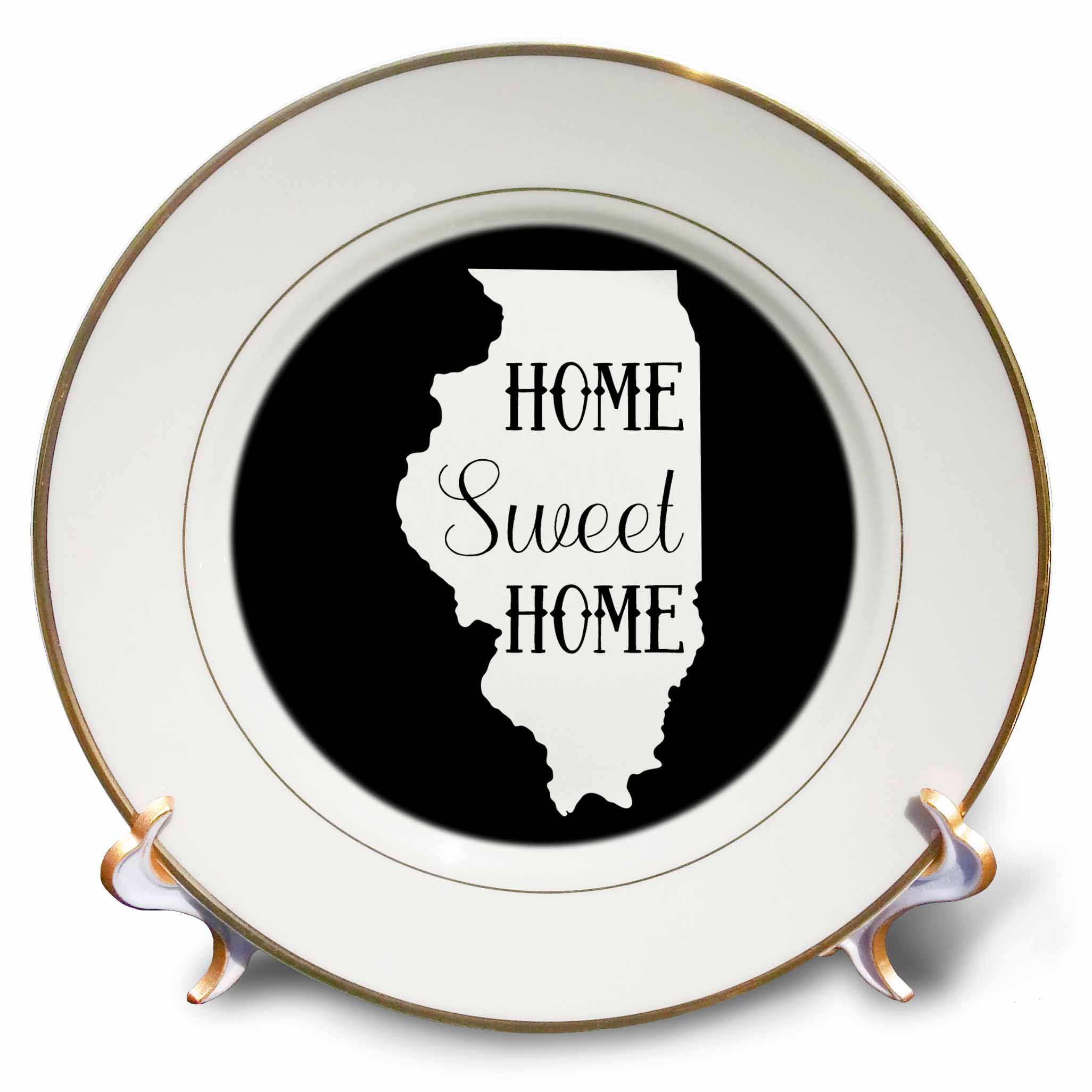 3dRose Home Sweet Home inside the state of Illinois. Black background. - Plates (cp-383389)