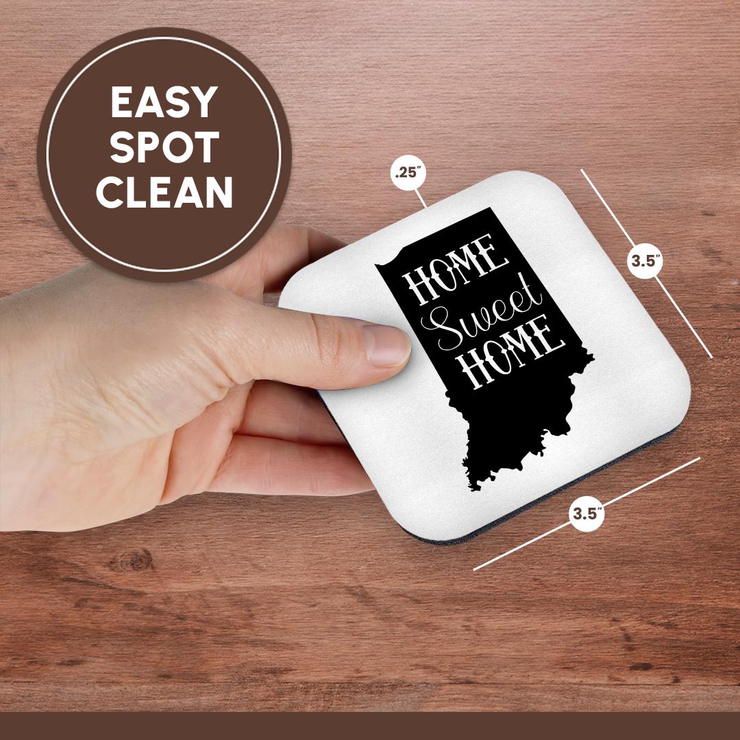 3dRose Home Sweet Home Inside The State of Indiana. White Background. - Coasters (cst-383400)
