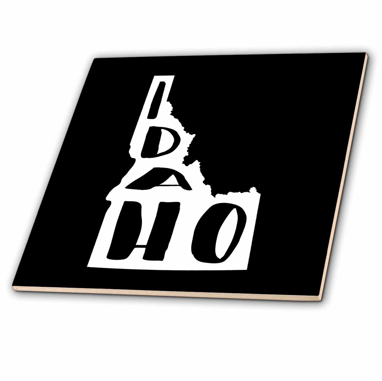Idaho written inside the state. Black background. Tile is great for a backsplash, countertop or as an accent. This commercial quality construction grade tile has a high gloss finish. The image is applied to the top surface and can be cleaned with a mild detergent.