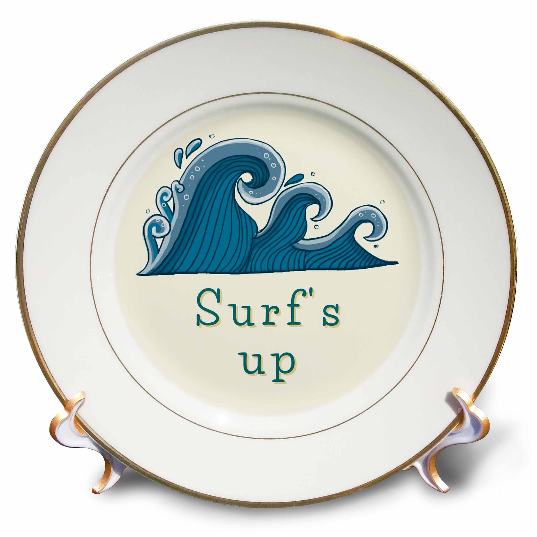 3dRose Mary Aikeen- Summer - Image of a Waves with Text of Surfs Up - Plates (cp-383600)