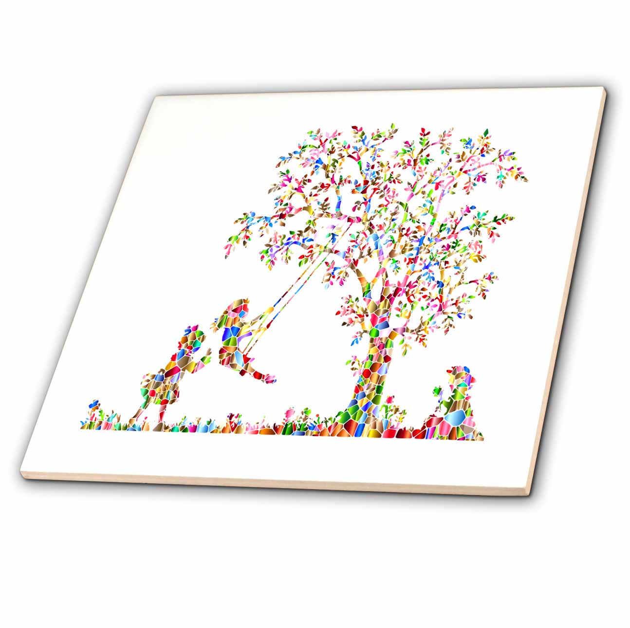3dRose Metallic Prism Art - Image of Metallic Prism Kids Swing and Tree - Tiles