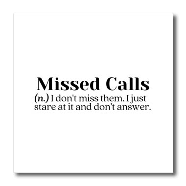 Missed Calls I Do Not Miss Them Funny Dictionary Iron on Heat Transfer is a great way to jazz up a plain T-shirt, pillow case or any other light colored fabric. The transfer is transparent and should be applied only to white or light colored material suitable to withstand high heat. Available in 6", 8" and 10". Color not true until transferred; home iron instructions included. Wash inside out using mild detergent and dry on low heat. Made in USA.
