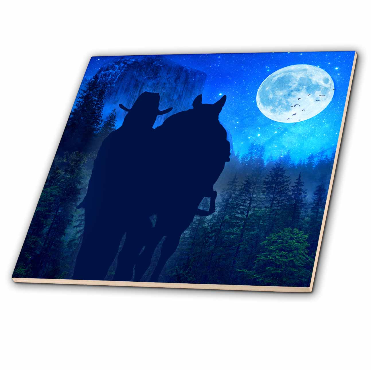 3dRose Moonlit Mountain Scene with a Cowgirl and Her Horse Country Western - Tiles (ct-365889)