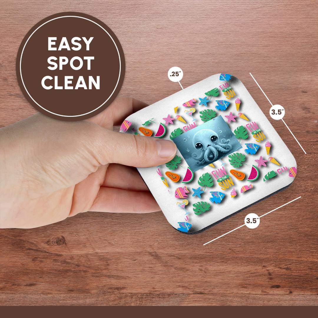 3dRose One Hungry Octopus Surrounded by Edible Goodies - Coasters (cst-384438)