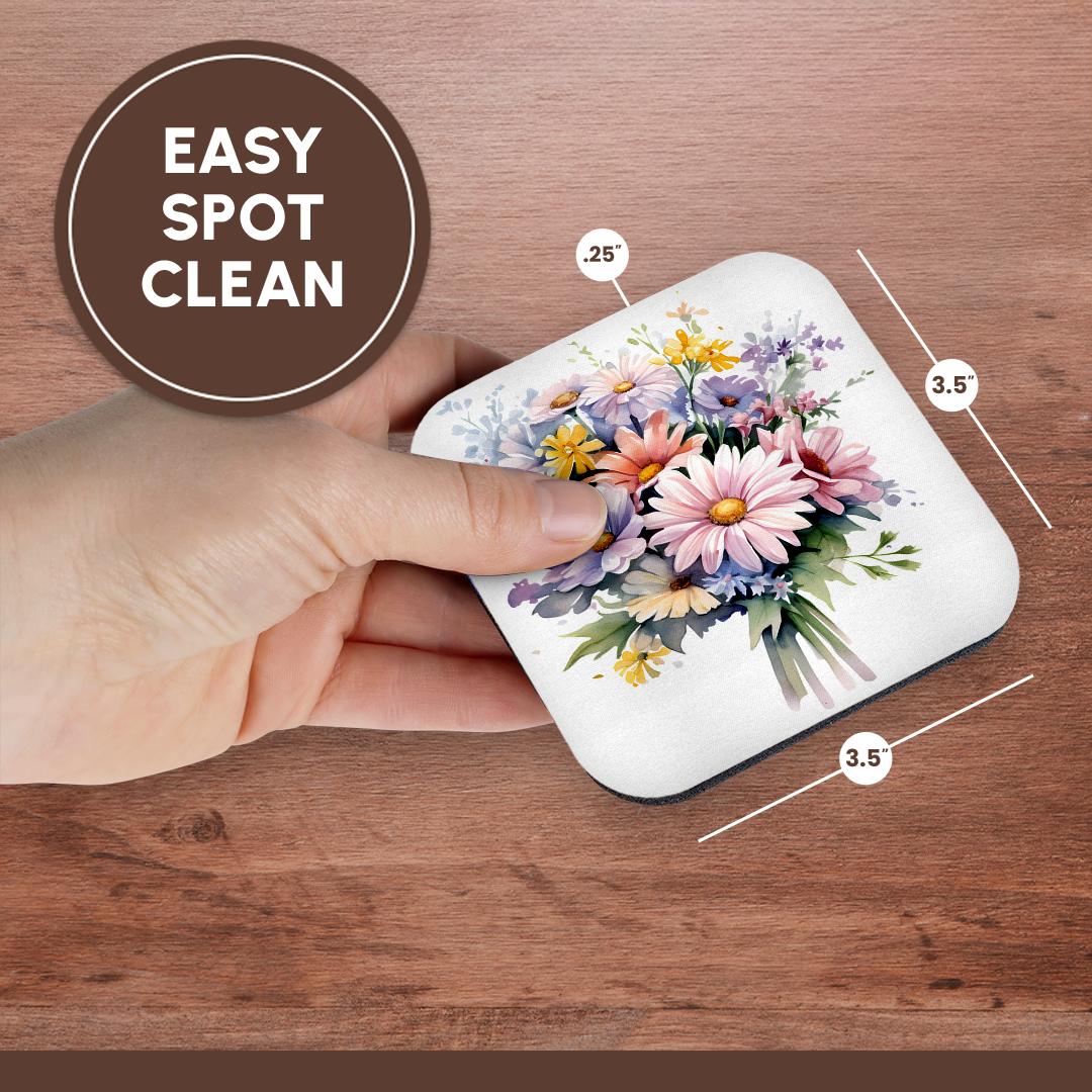 3dRose Pretty Pink and Purple Daisy and Cosmos Flower Illustration - Coasters (cst-383284)