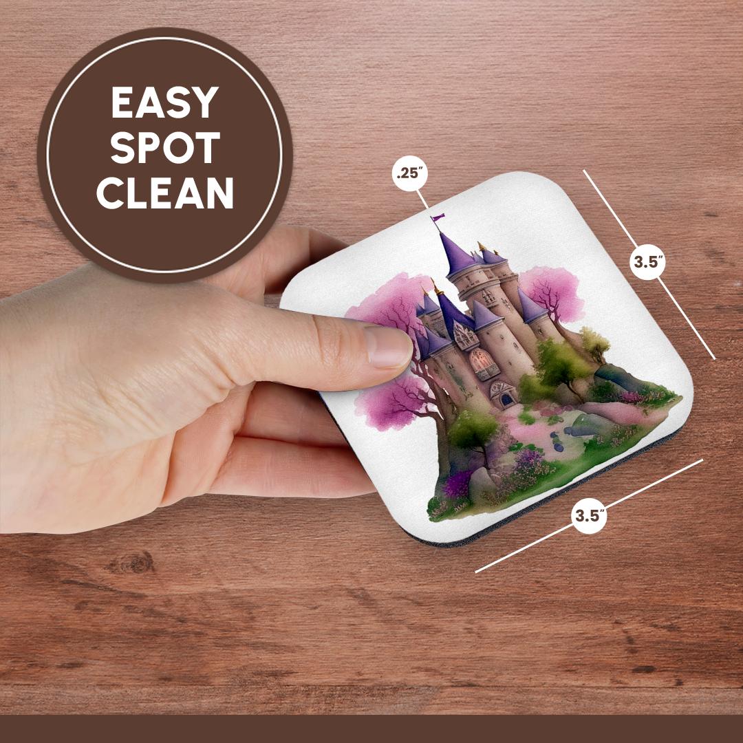 3dRose Pretty Pink and Purple Fairytale Castle Illustration - Coasters (cst-383278)